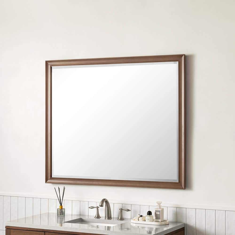 The Glenbrook Vanity Mirror by James Martin Vanities features a timeless design with a white wash walnut finish. Its premium glass and 1-inch bevel add elegance, while the versatile mounting options make it suitable for any room.