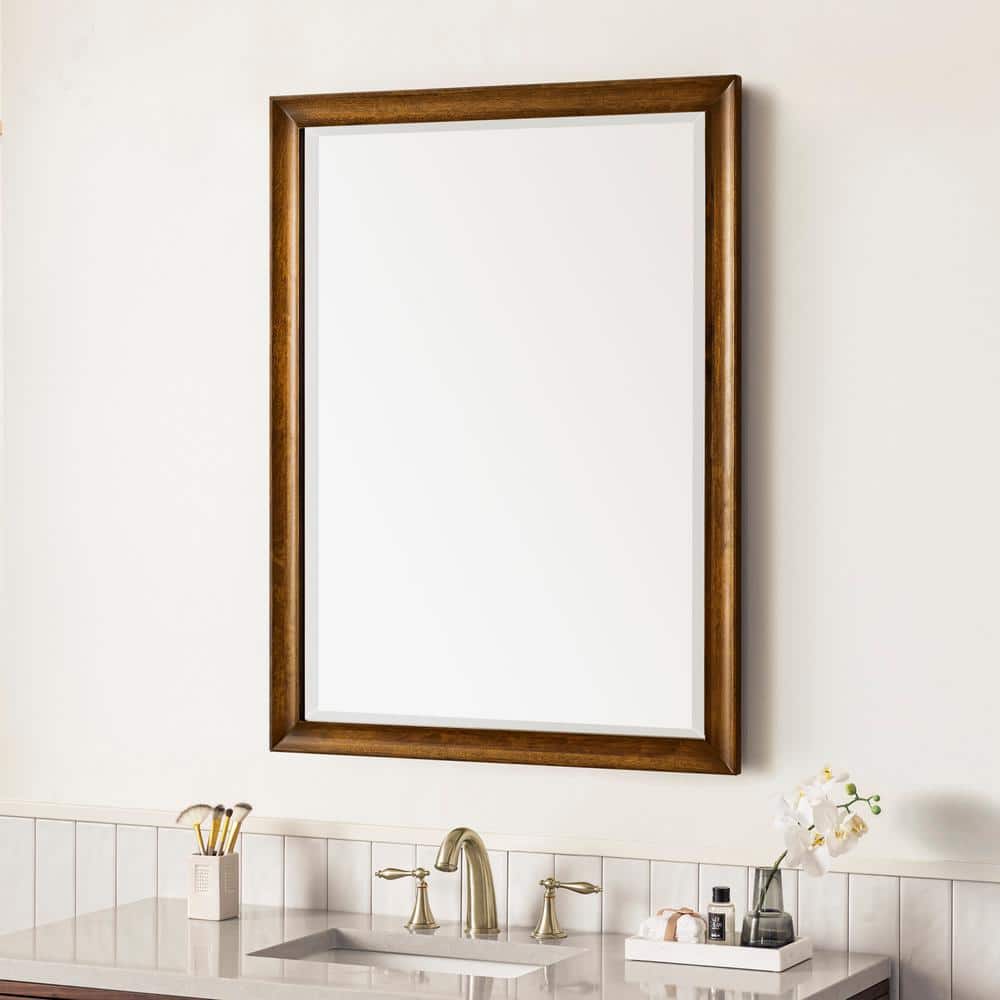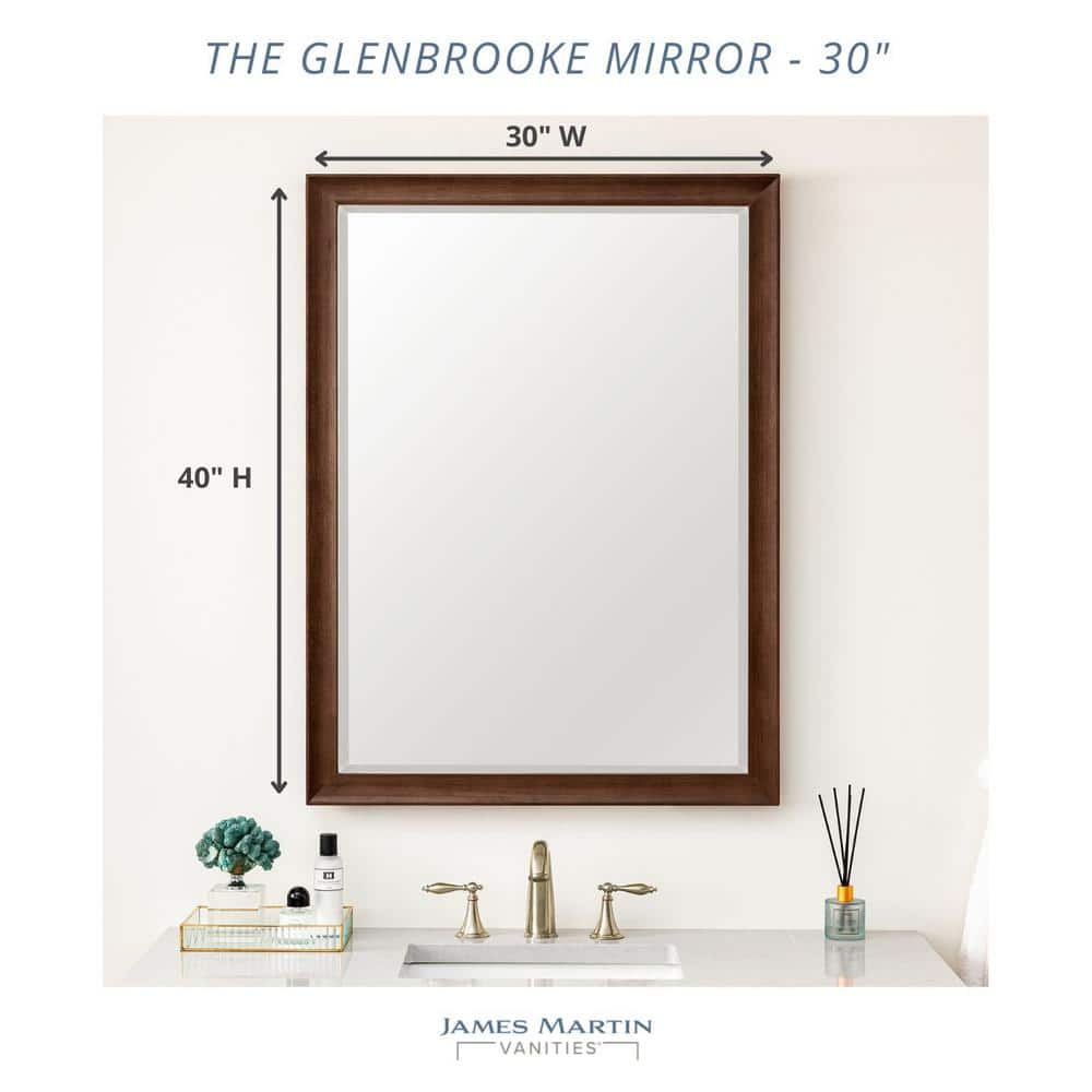 The Glenbrooke Vanity Mirror by James Martin Vanities features a timeless rectangular design with a warm Country Oak finish. Its premium wood frame and beveled glass add elegance to any bathroom or living space.