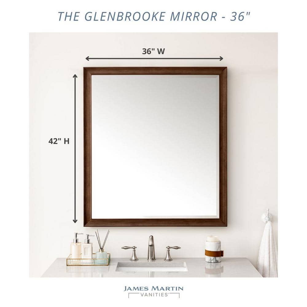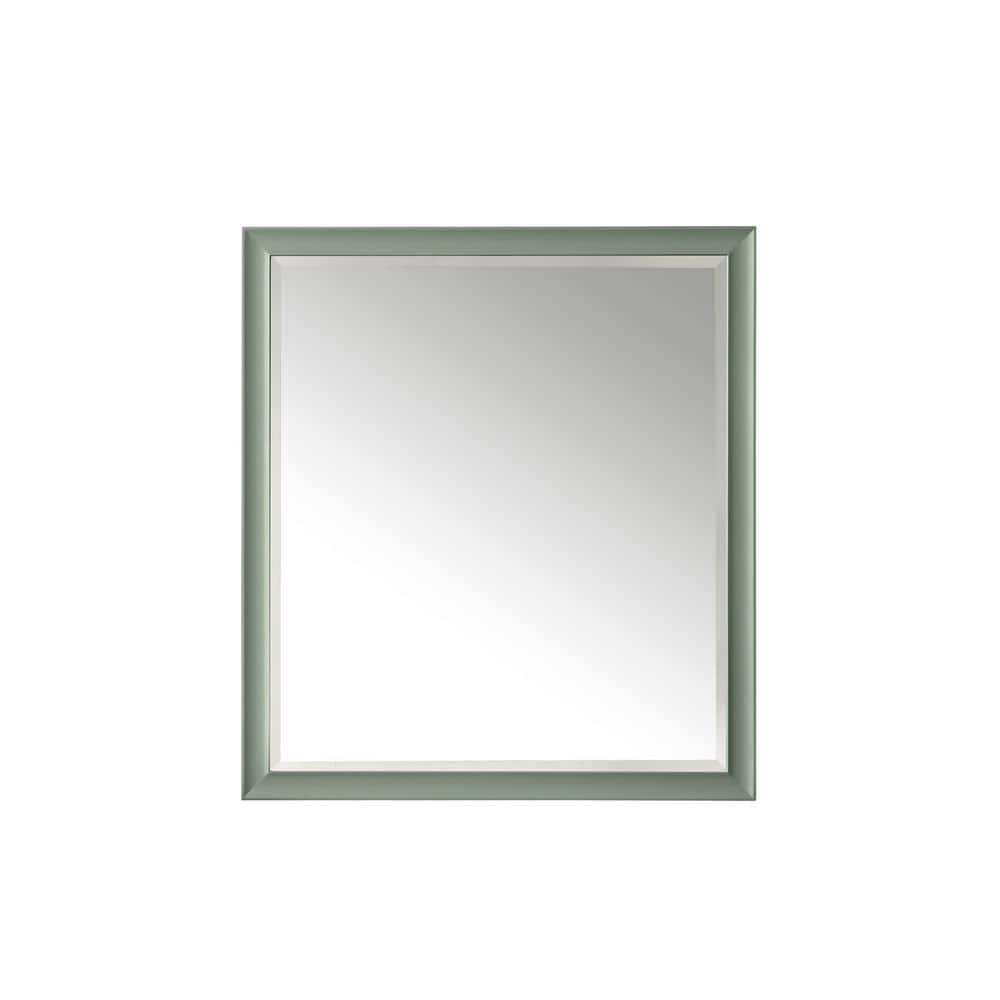 The Glenbrooke Vanity Mirror by James Martin Vanities features a timeless design with a Smokey Celadon finish, a 1-inch bevel, and versatile mounting options. Perfect for enhancing any bathroom or living space.