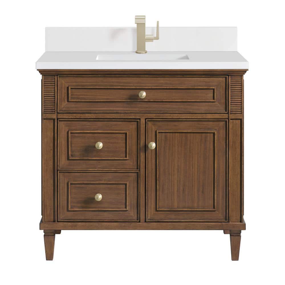 James Martin Vanities Lorelai 36" Single Sink Bath Vanity in Mid-Century Walnut with White Zeus Quartz Top