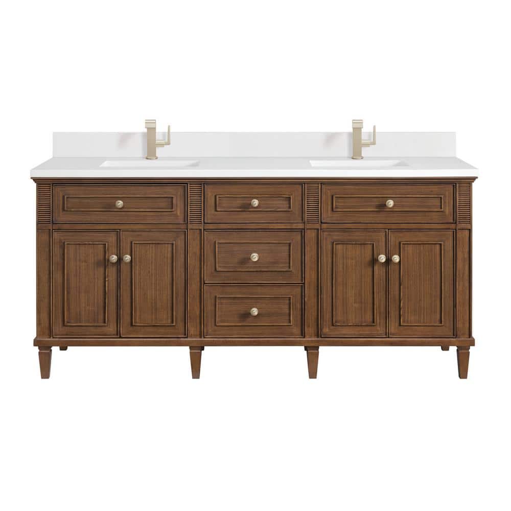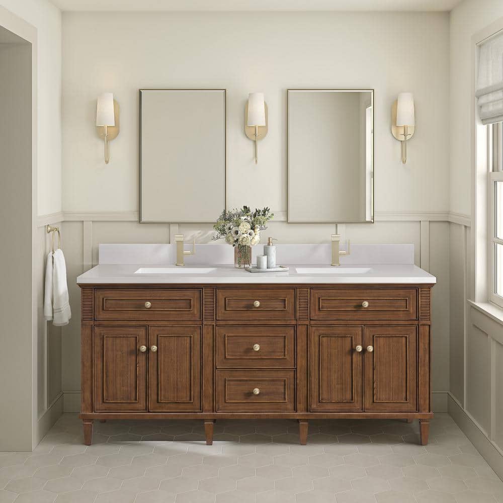 James Martin Vanities Lorelai 72" Double Sink Bathroom Vanity in Walnut with Quartz Top