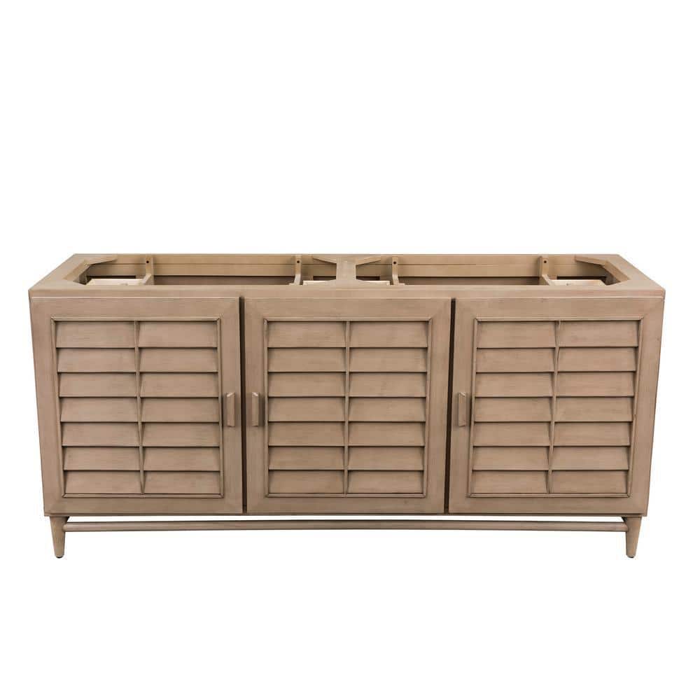 The Portland 72" Double Vanity in Whitewashed Walnut is a masterpiece of design and functionality. Its shutter-inspired doors and polished quartz top exude sophistication, while the ample storage ensures practicality. Pair it with brushed nickel fixtures for a cohesive look, and let its timeless charm redefine your bathroom space. This vanity is the epitome of luxury and utility.