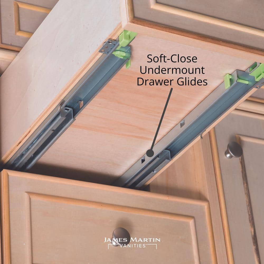 Ample Storage: Includes soft-close drawers and adjustable shelves.