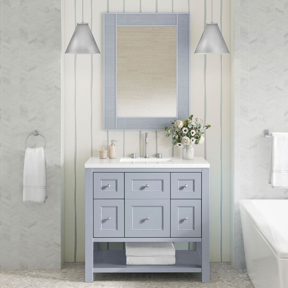 Customers praise the Solene Vanity Mirror for its elegant design and high-quality construction. Many appreciate the Serenity Blue finish, which adds a calming touch to their bathrooms. The natural cane detailing is often highlighted as a unique and stylish feature. Some users noted the mirror's substantial weight, emphasizing the need for secure installation. Overall, the mirror is well-received for its aesthetic appeal and durability.