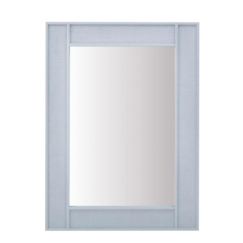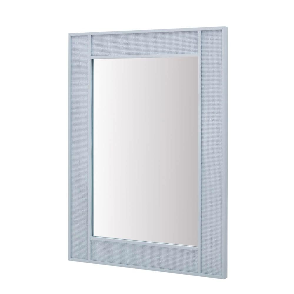 The Solene Vanity Mirror in Serenity Blue combines natural materials with a sleek design. Its white oak frame and natural cane detailing add a touch of elegance, while the French cleat hanger ensures easy installation.