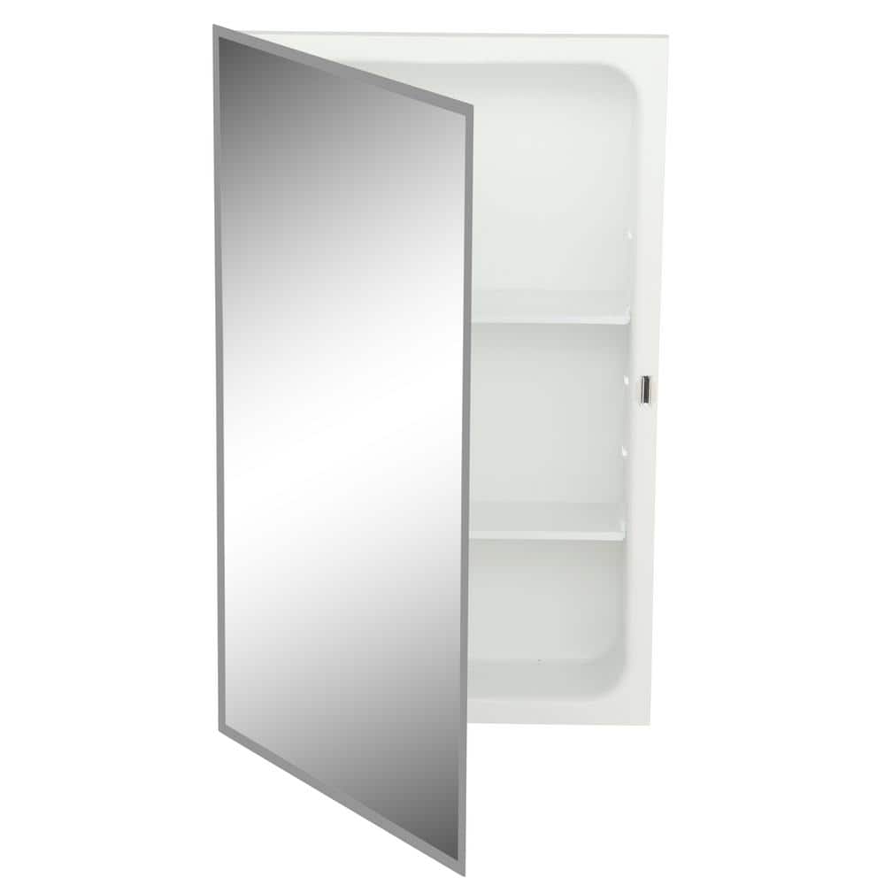 The JENSEN Horizon Frameless Medicine Cabinet brings elegance and functionality to your bathroom with its 16 x 26-inch design and beveled edge mirror. Enjoy organized storage with two adjustable steel shelves and a durable, rust-resistant white steel cabinet that ensures long-lasting use. Easy installation is achieved with pre-drilled mounting holes, making it a reliable choice for both professional installations and DIY enthusiasts.