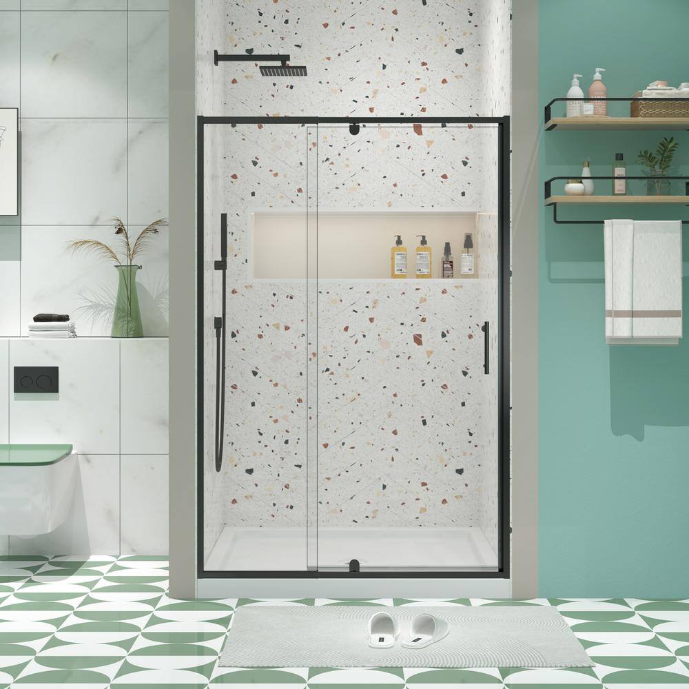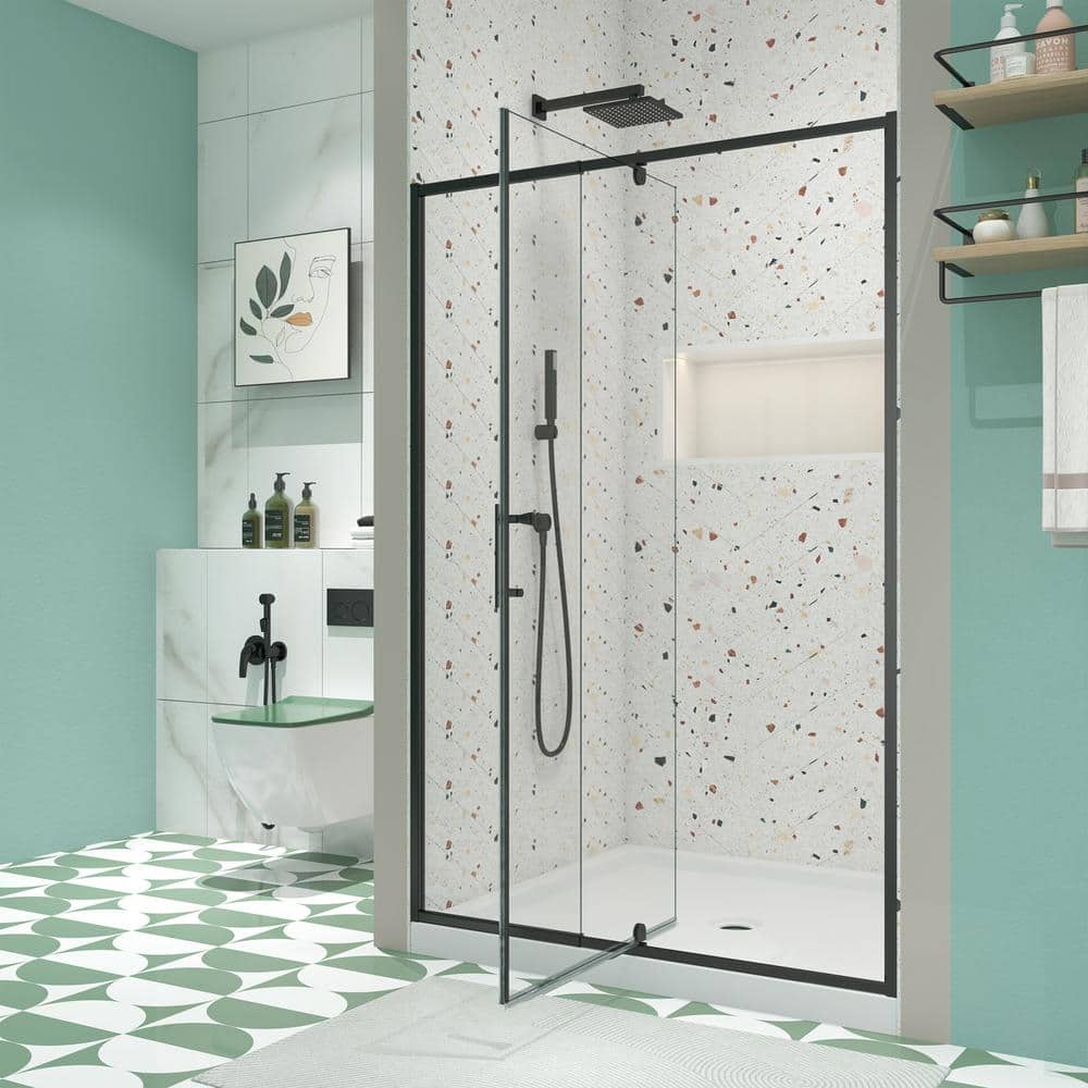 Matte Black Pivot Framed Shower Door with Tempered Glass