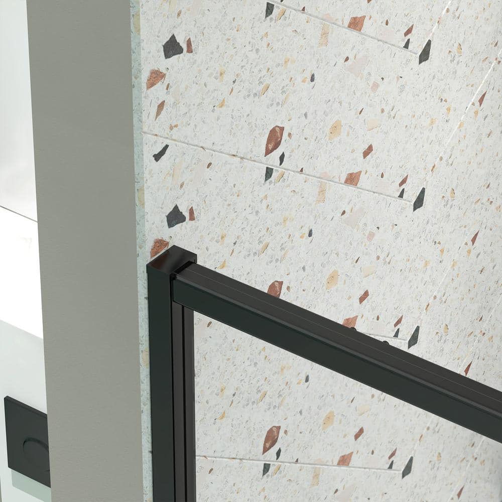 Upgrade your bathroom with the JimsMaison 60 in. x 71 in. Pivot Framed Shower Door, featuring a striking matte black finish and durable tempered glass. Designed for modern elegance and functionality, this door provides effortless accessibility and a sleek, frameless aesthetic.