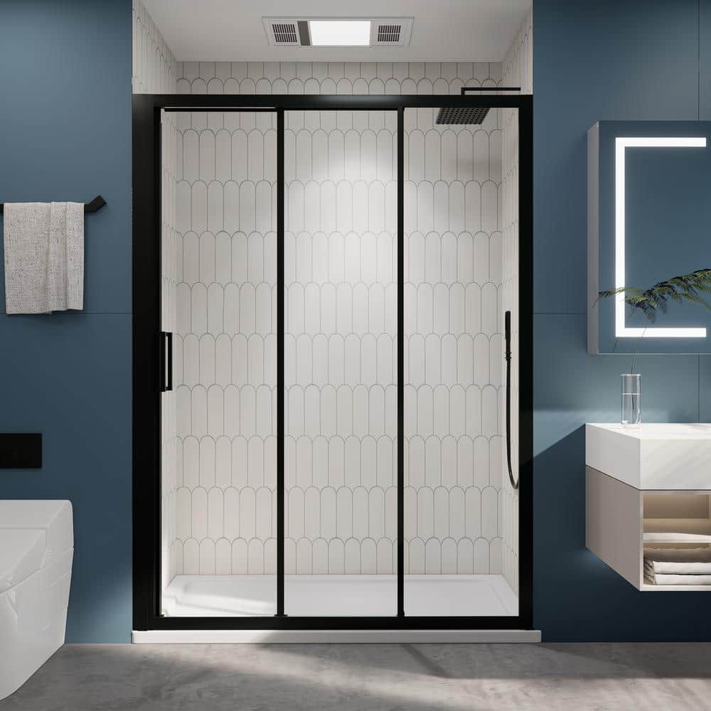 3-Panel Sliding Shower Door with Clear Glass - Matte Black