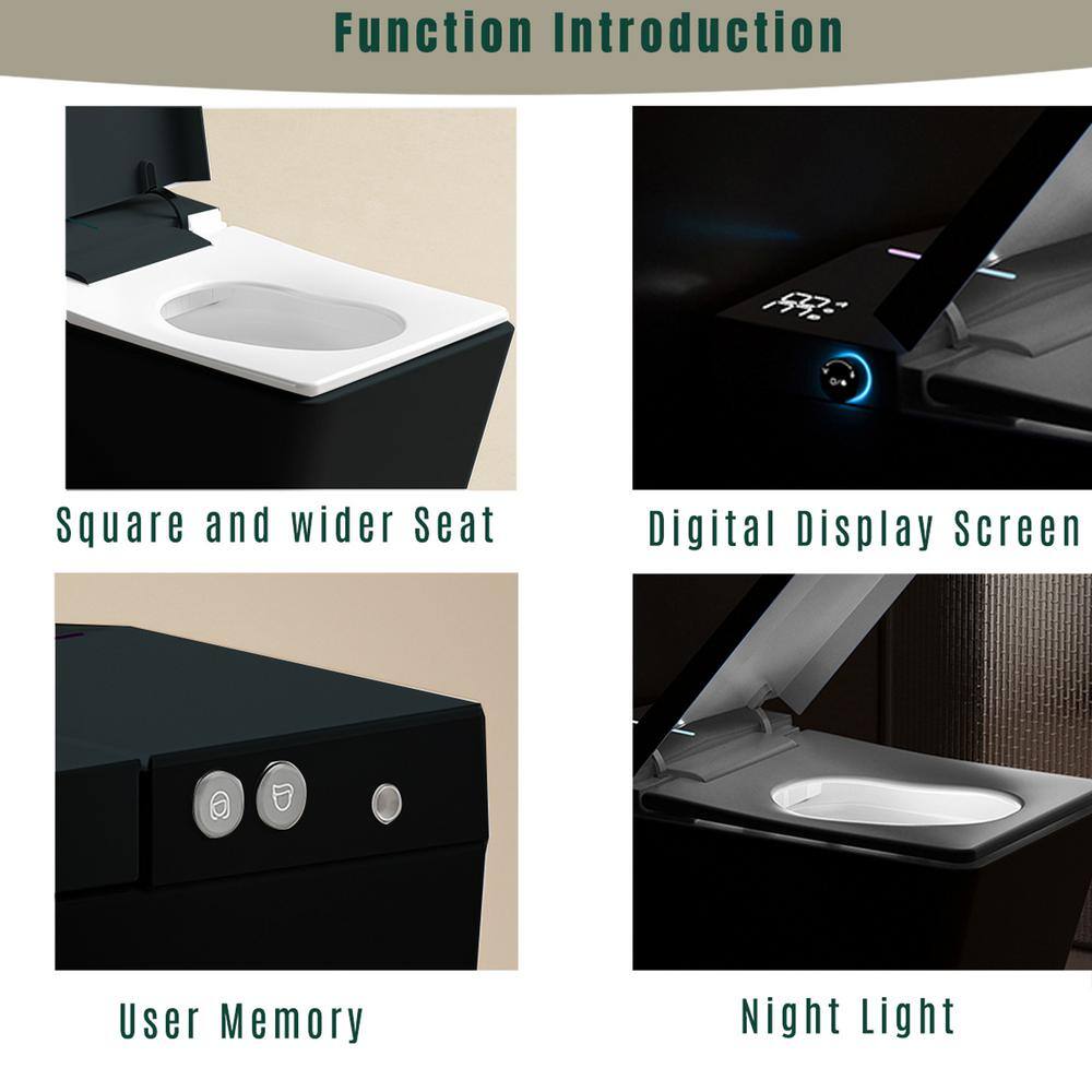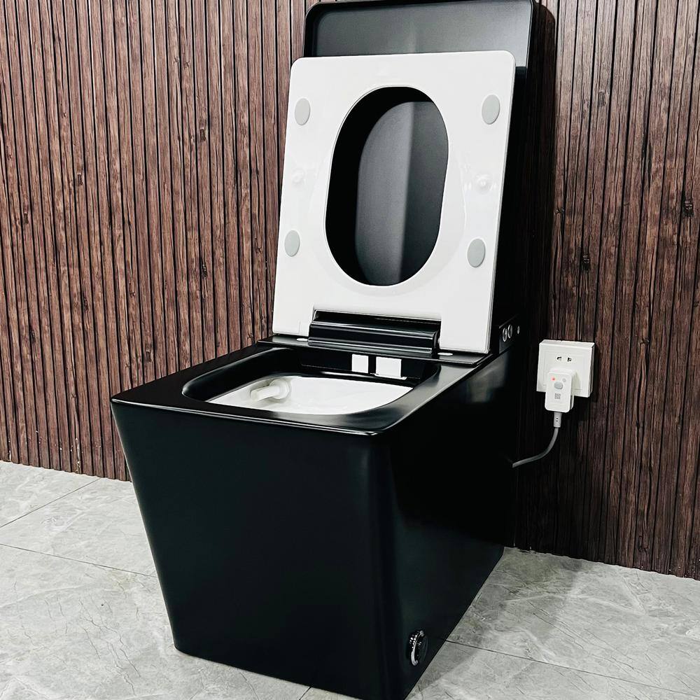 Transform your bathroom with the JimsMaison Square Bidet Toilet, featuring a high-end matte black finish and a suite of smart features. Enjoy an elevated bathroom experience with its auto flush, heated seat, and LED digital display, providing comfort and convenience for every family member.