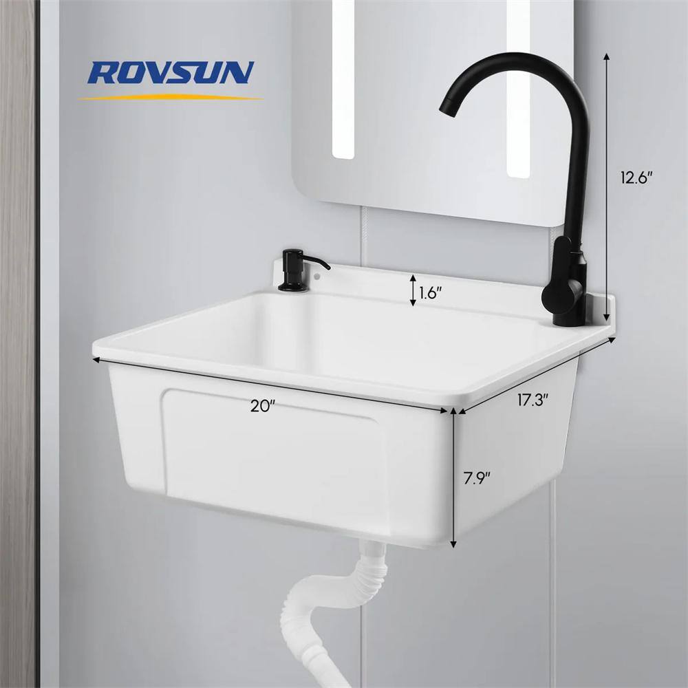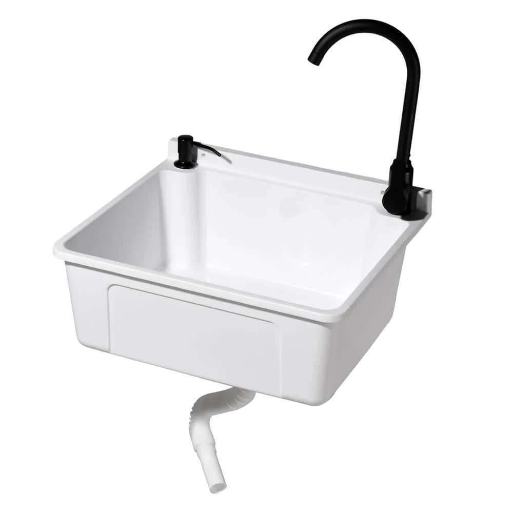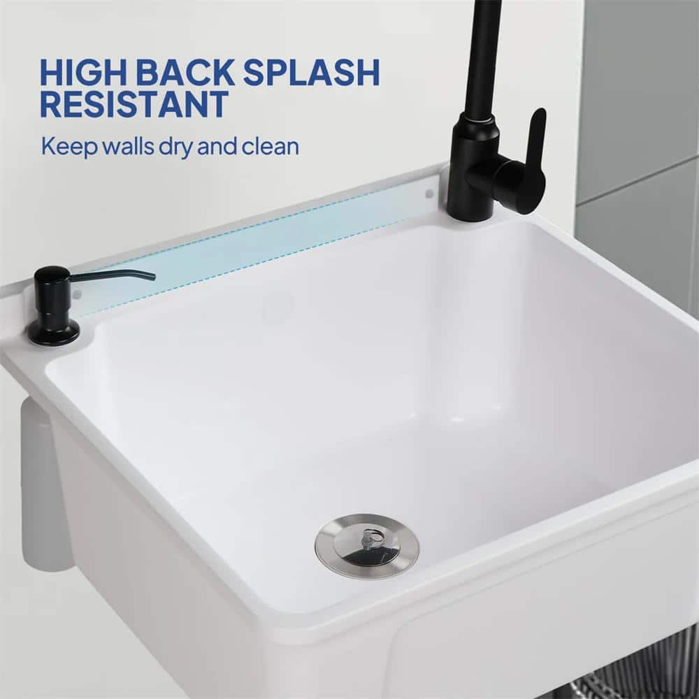 The Karl home Wall Mount Laundry/Utility Sink offers a sleek and space-saving solution, perfect for laundry rooms, workshops, and garages. Crafted from high-quality plastic, it provides durability and easy maintenance. Its convenient wall-mounted design and included faucet make it an all-in-one, efficient choice for any utility area.