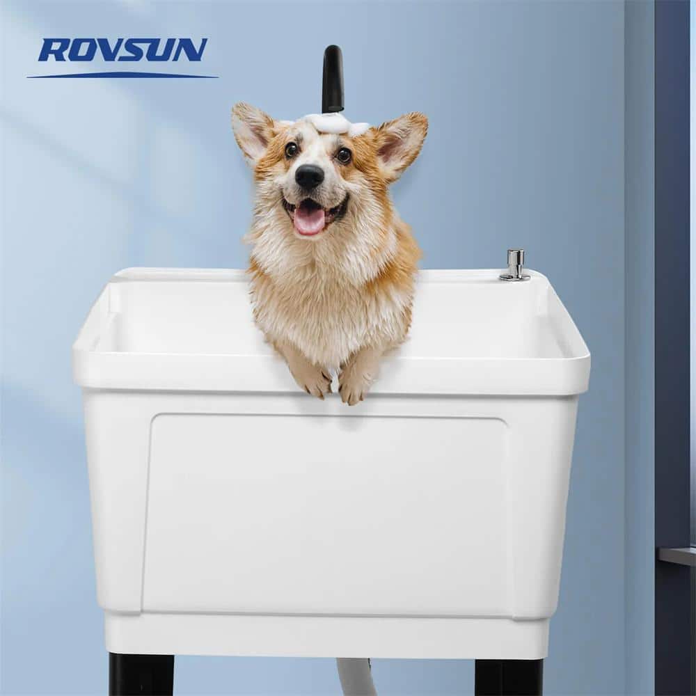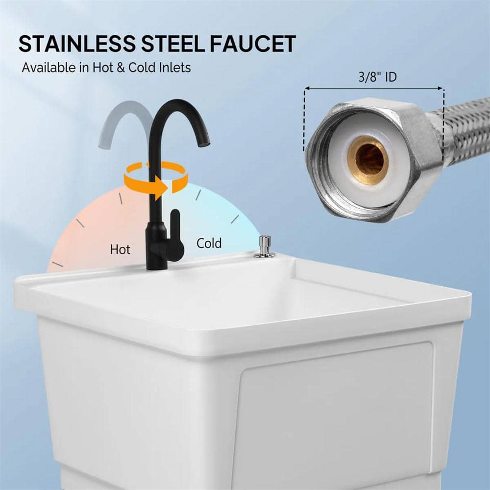 The Karl home Freestanding Laundry Utility Sink in White is a versatile solution for any home cleaning need. Crafted from durable plastic, it offers a spacious 23.6-inch basin complete with a stainless-steel faucet. Its freestanding design allows easy installation in compact spaces like laundry rooms, garages, or basements.