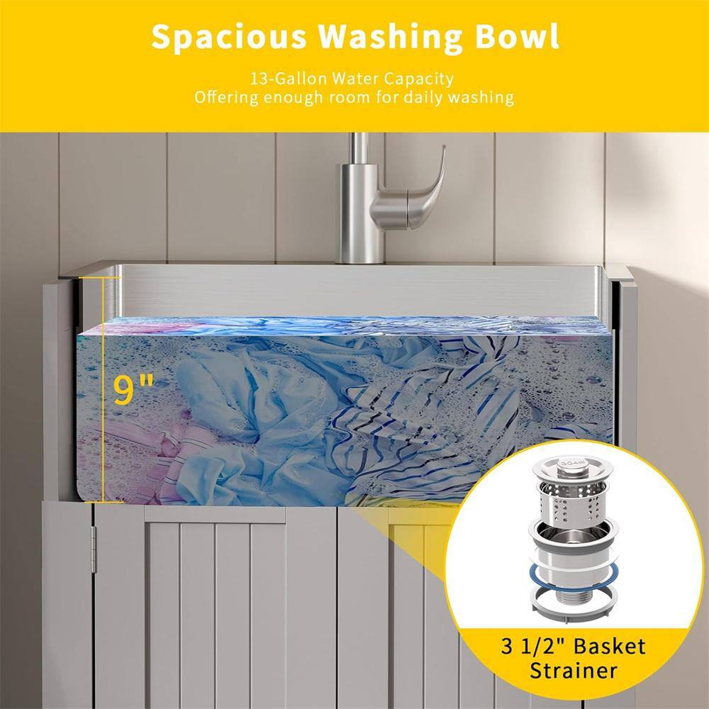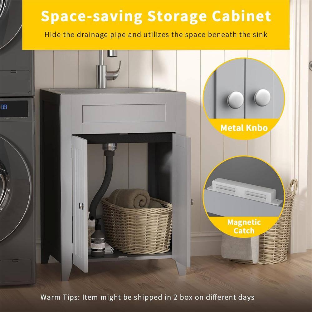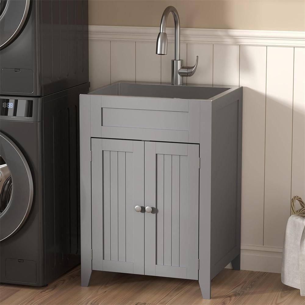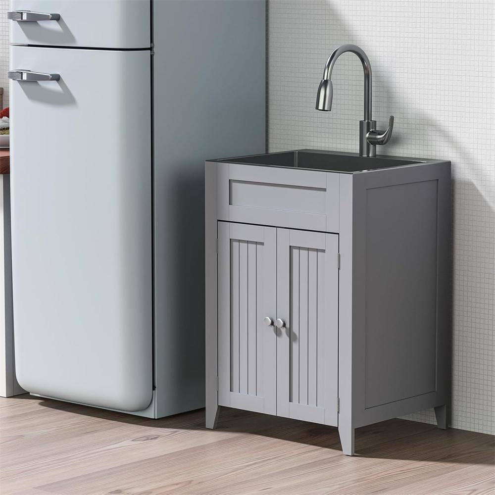 Karl home 24 in. D Drop-In Laundry/Utility Sink in Gray with Cabinet and Pull-Out Sprayer Faucet