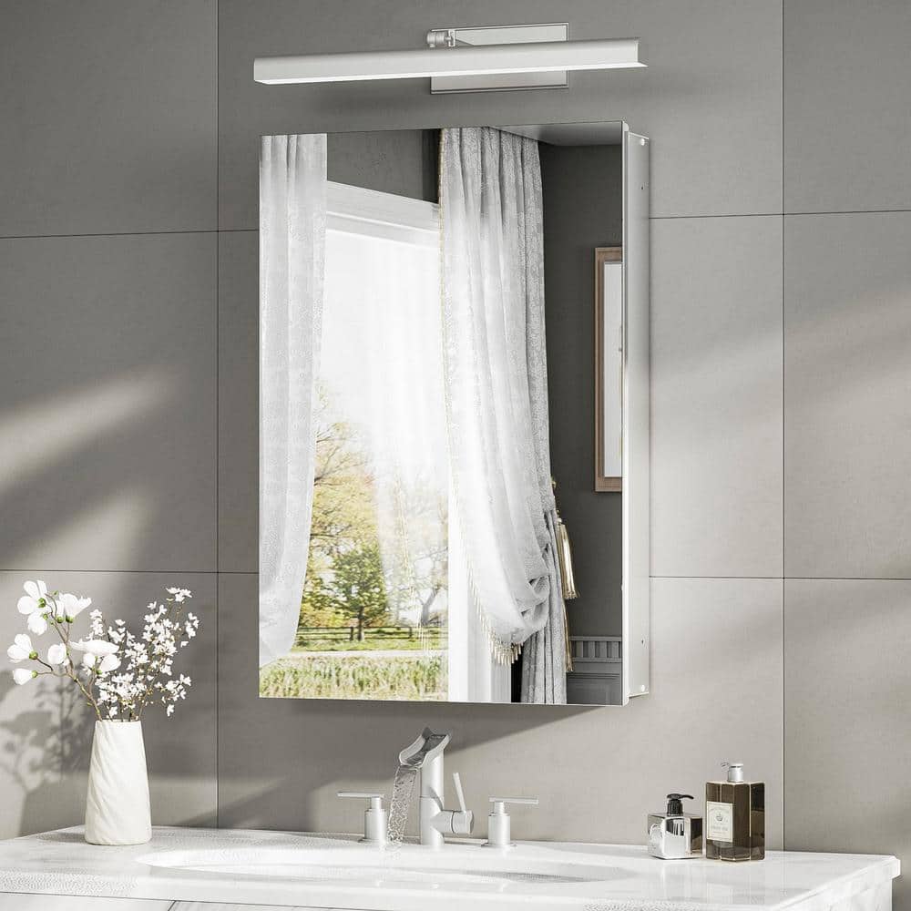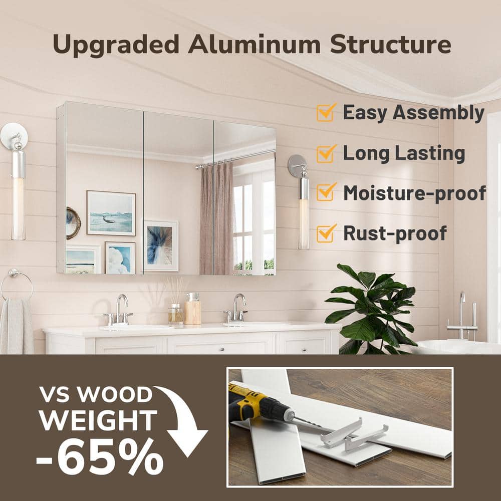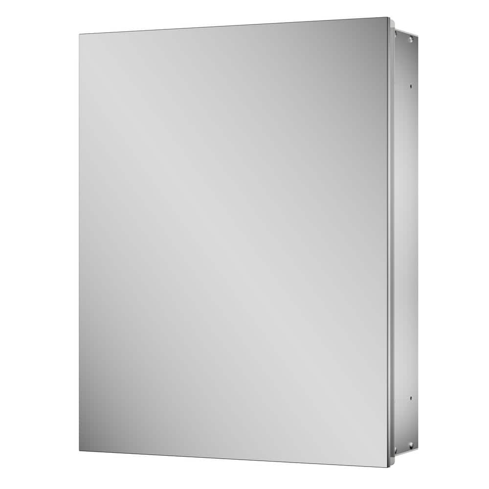 Elevate your bathroom with the KeonJinn Rectangular Frameless Aluminum Medicine Cabinet. Featuring an anodized aluminum construction and full-overlay mirrored door, this cabinet combines durability with modern style. Adjustable glass shelves inside provide customizable storage for your toiletries.