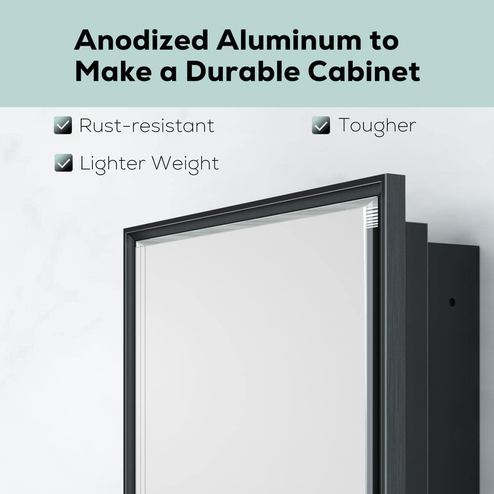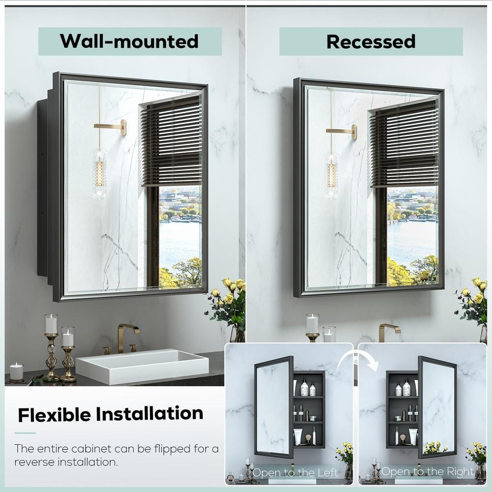 KeonJinn 24 in. W x 30 in. H Rectangular Brass Aluminum Alloy Black Framed Recessed/Surface Mount Medicine Cabinet with Mirror