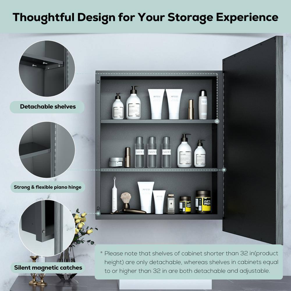 The KeonJinn Medicine Cabinet combines modern elegance with practical functionality, featuring a sleek black aluminum frame and adjustable shelves. Designed for both recessed and surface mounting, it offers versatility and style for your bathroom space. With a durable, anti-rust build, this cabinet is ready to meet your storage needs while enhancing your decor.