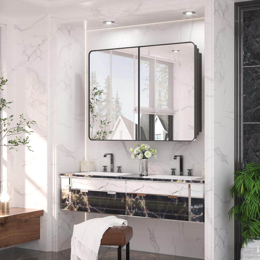 With its sophisticated black stainless steel finish, this medicine cabinet introduces a luxurious touch to any bathroom space. The sleek frame and sharp reflections from the copper-free glass mirror create a bold visual statement while offering unmatched functionality. Imagine elevating your daily rituals with softly closing doors that ensure a tranquil start to your mornings. This piece is not just storage, but a centerpiece, essential for those who cherish refined living.