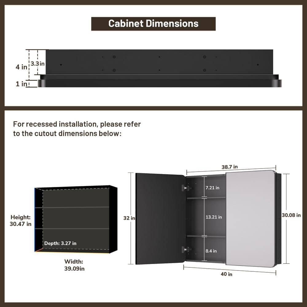 Enhance your bathroom decor with the sleek KeonJinn Black Stainless Steel Medicine Cabinet. Featuring durable construction and a sophisticated design, it offers both recessed and surface-mount installation options. With its slow-close door technology and adjustable shelving, this cabinet is a perfect blend of style and functionality for any modern bath space.