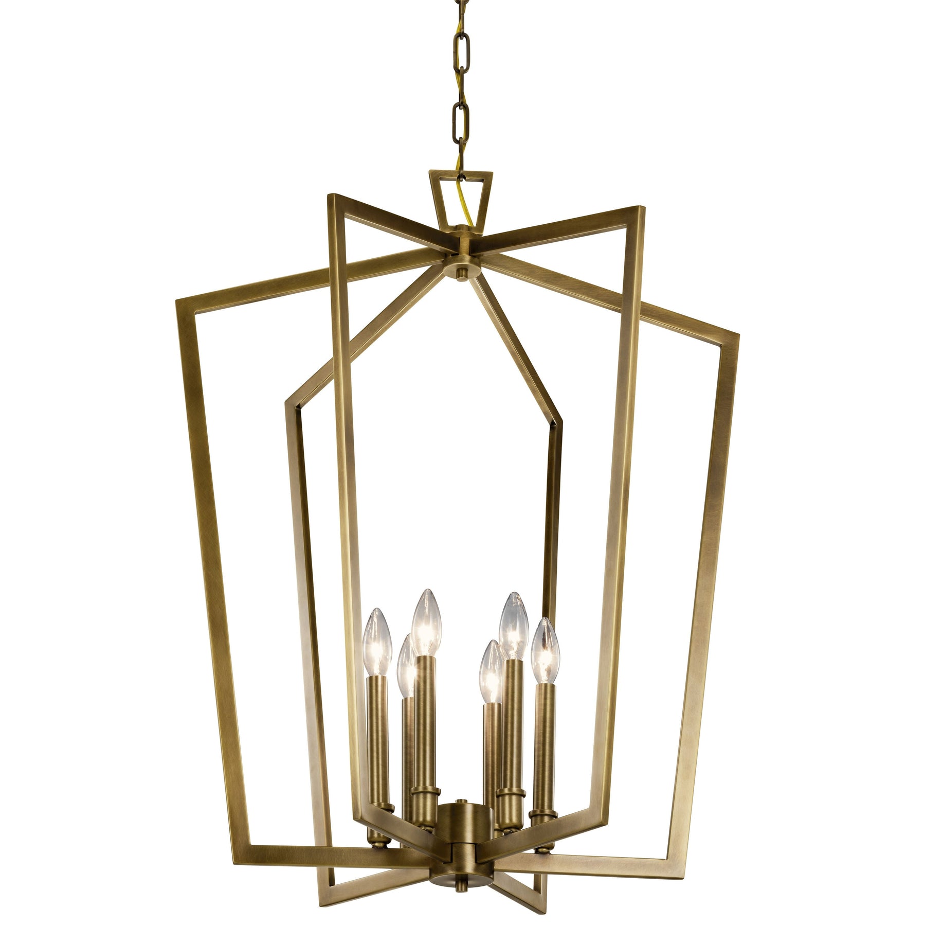 Kichler Abbotswell 6-Light Natural Brass Traditional Lantern Large Hanging Pendant Light