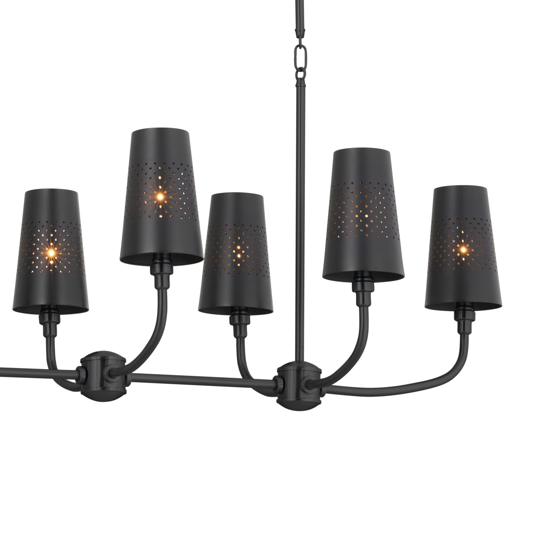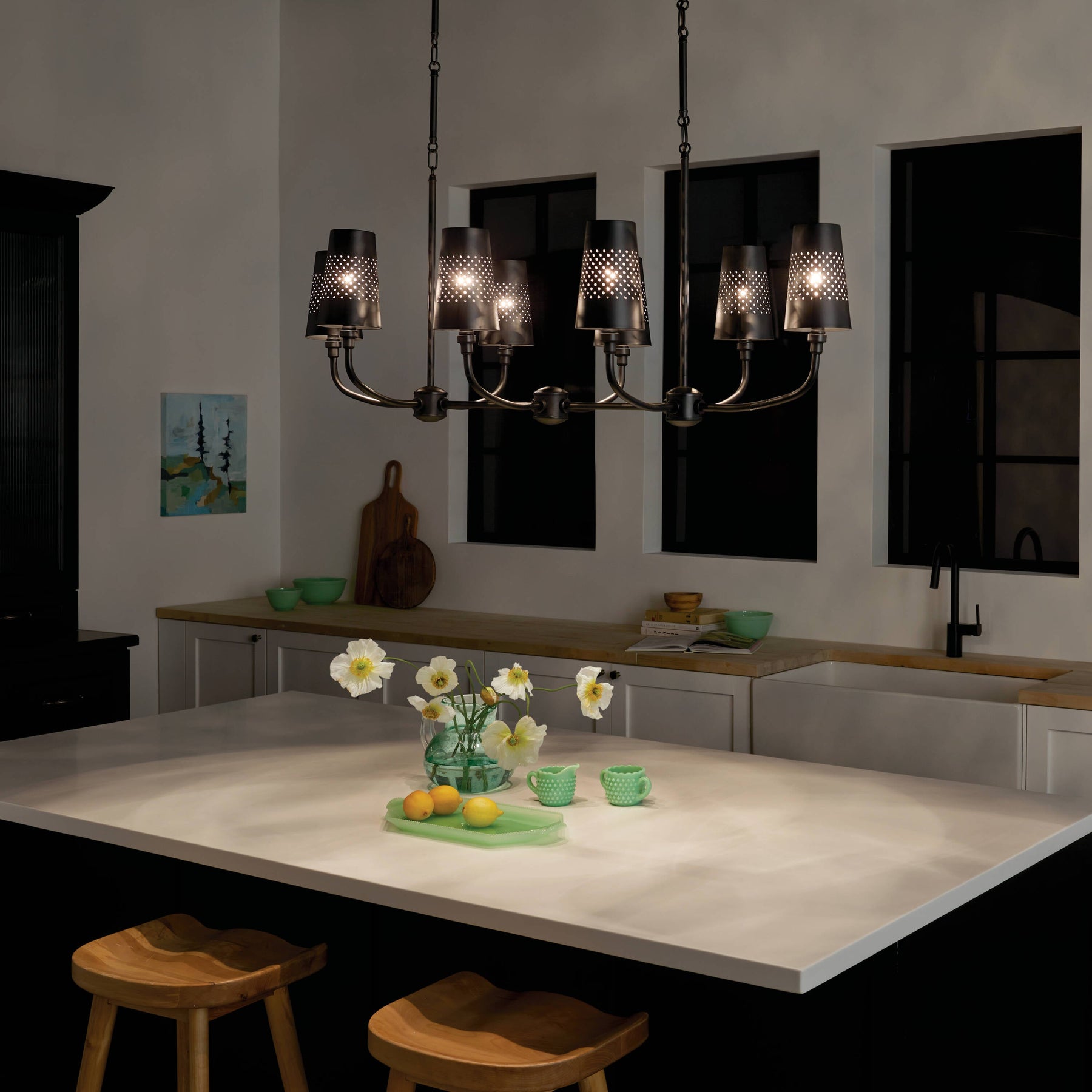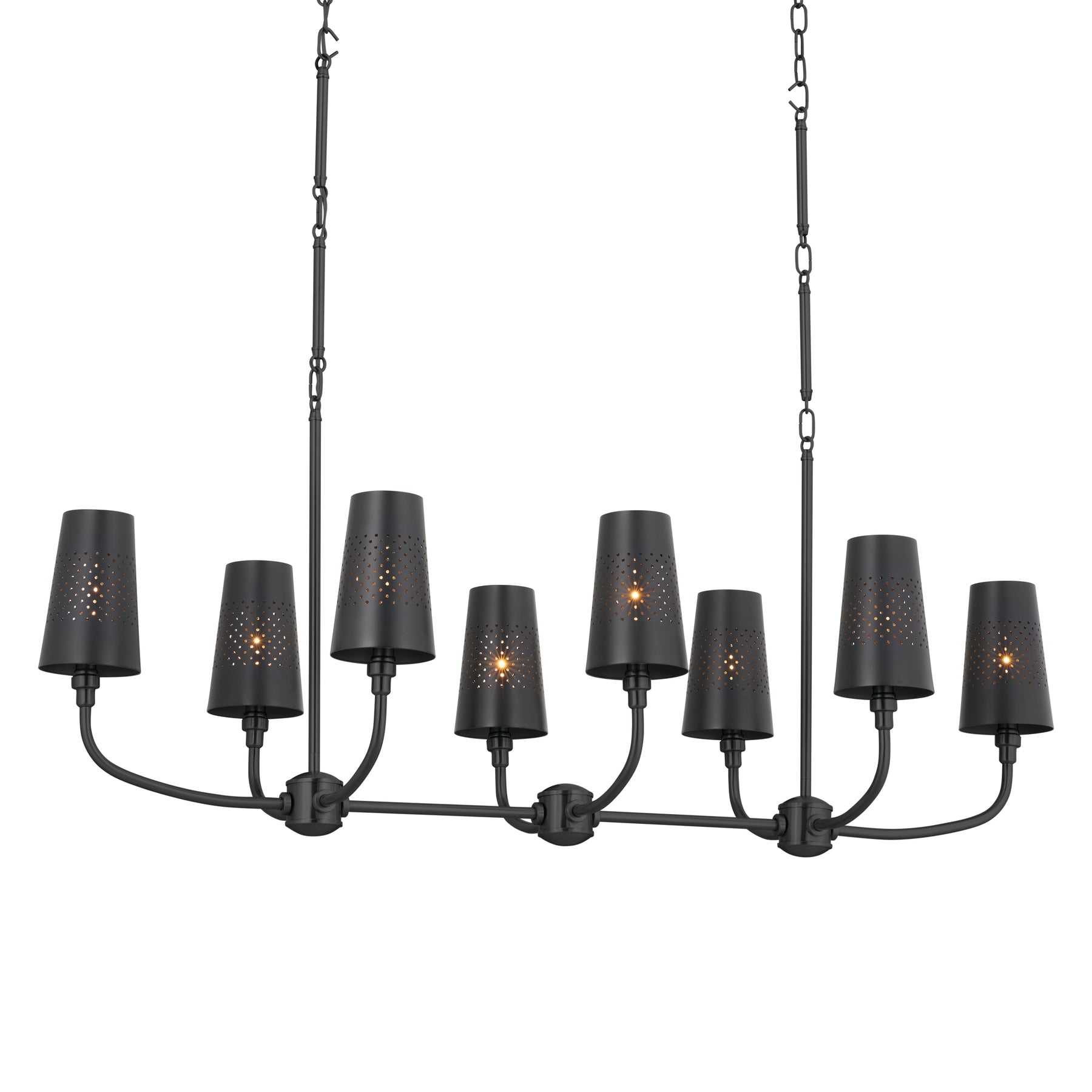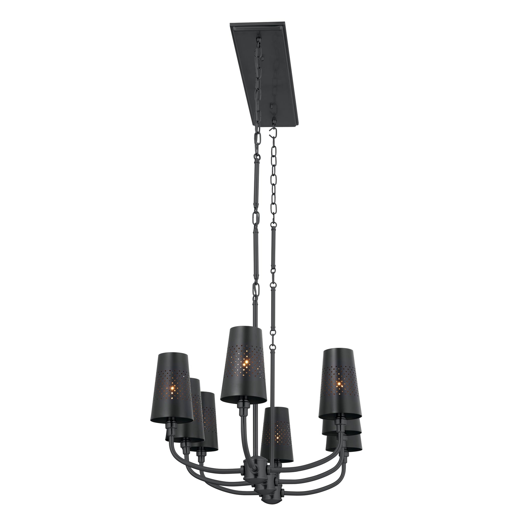 Illuminate your space with the elegant charm of the Kichler Adeena 8-Light Black Traditional Chandelier. Its steel construction and perforated metal shades create a sophisticated ambiance, perfect for enhancing dining rooms, kitchens, and more. This chandelier showcases a timeless design with flexibility in installation to suit any indoor decor.