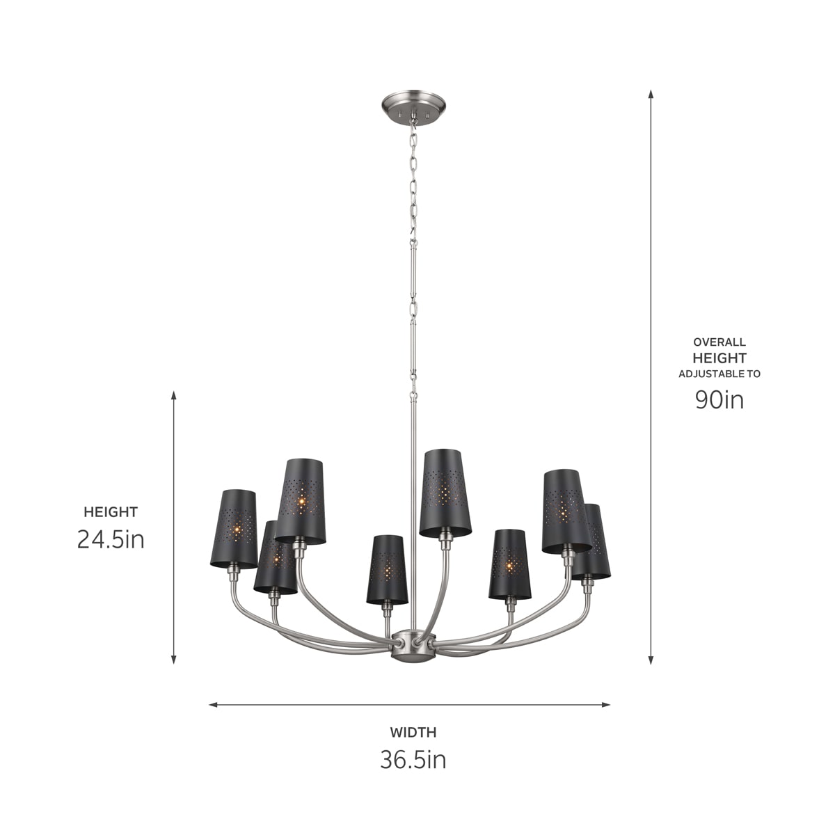 • Lighting Requirements: Accommodates eight candelabra E12 bulbs up to 60W each, offering flexible luminescent options with LED compatibility.