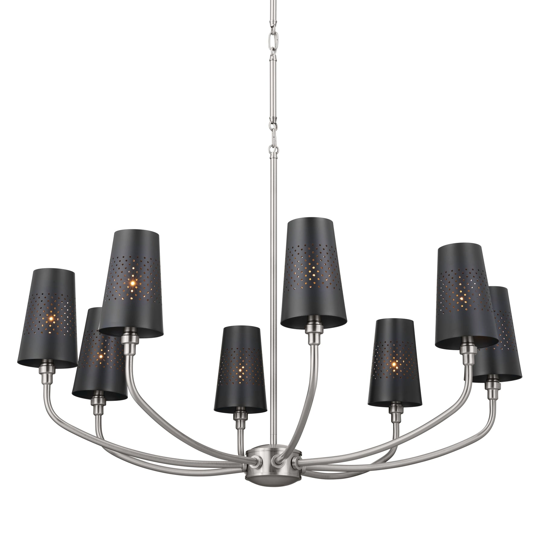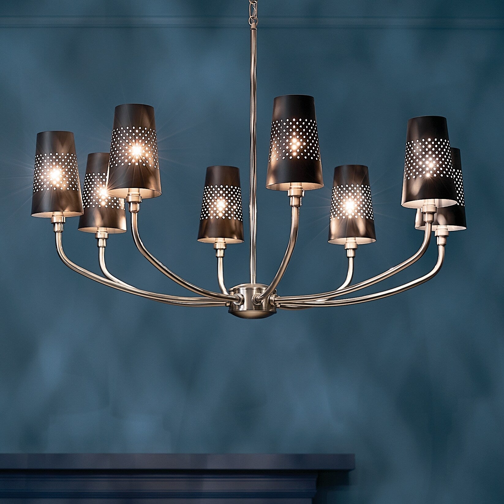 With its radiant pewter finish and elegantly perforated shades, the Kichler Adeena Chandelier transforms any space into a romantic haven. The interplay of light and shadow dances upon your walls, evoking a sense of enchantment. Picture it adorning a grand dining room or casting a warm glow in a cozy foyer. This chandelier isn't merely lighting; it's an art statement—a testament to refined living and classical beauty.