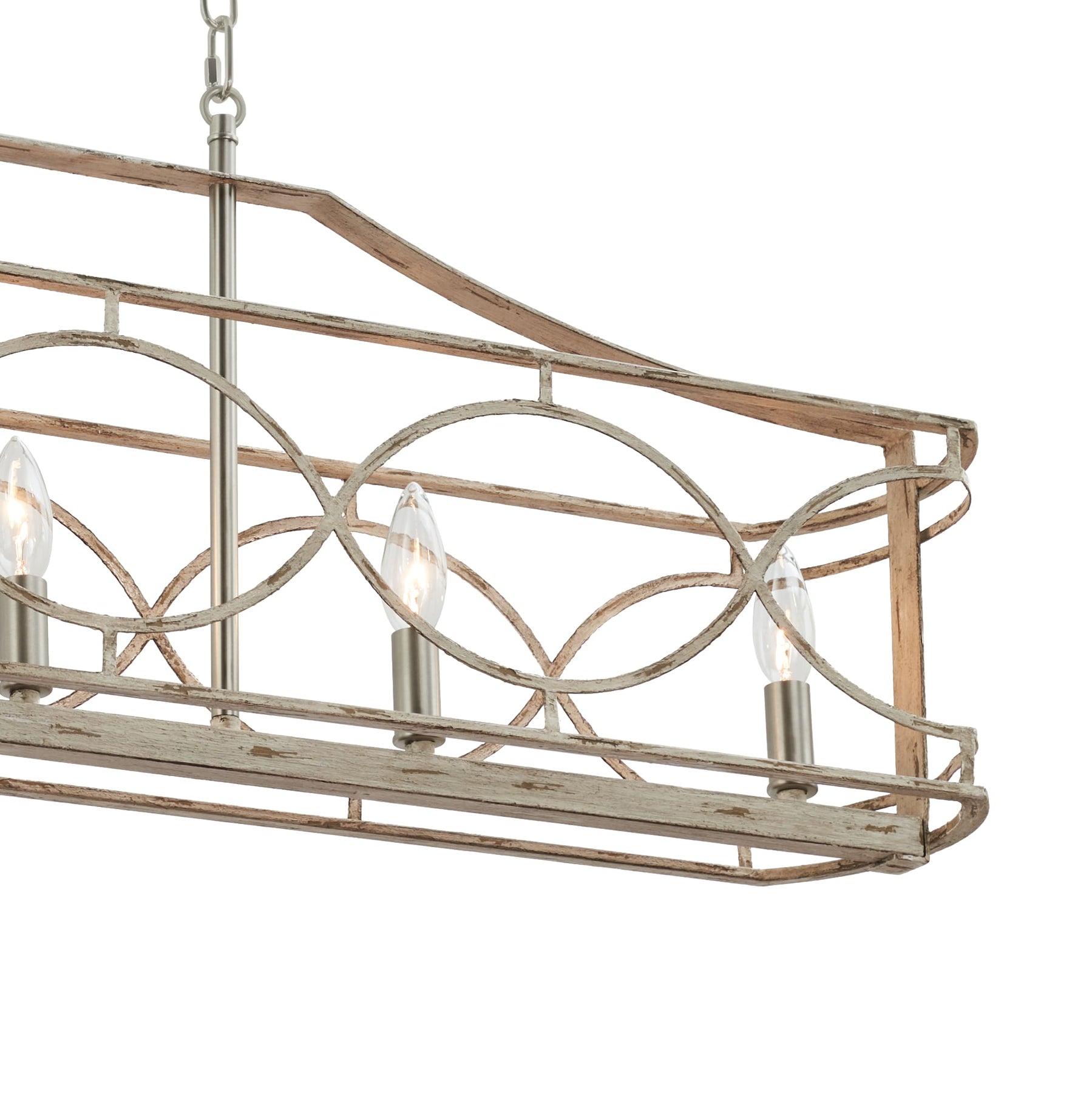 Let your interiors bask in coastal elegance with the Adelgade Chandelier. Its distressed antique white finish and graceful lines evoke the easy charm of the seaside. Playful, yet sophisticated, this chandelier makes a statement over a dining table or can anchor a kitchen island with its refined light. Illuminate your space with its inviting glow, ensuring dreamy, luxurious living.