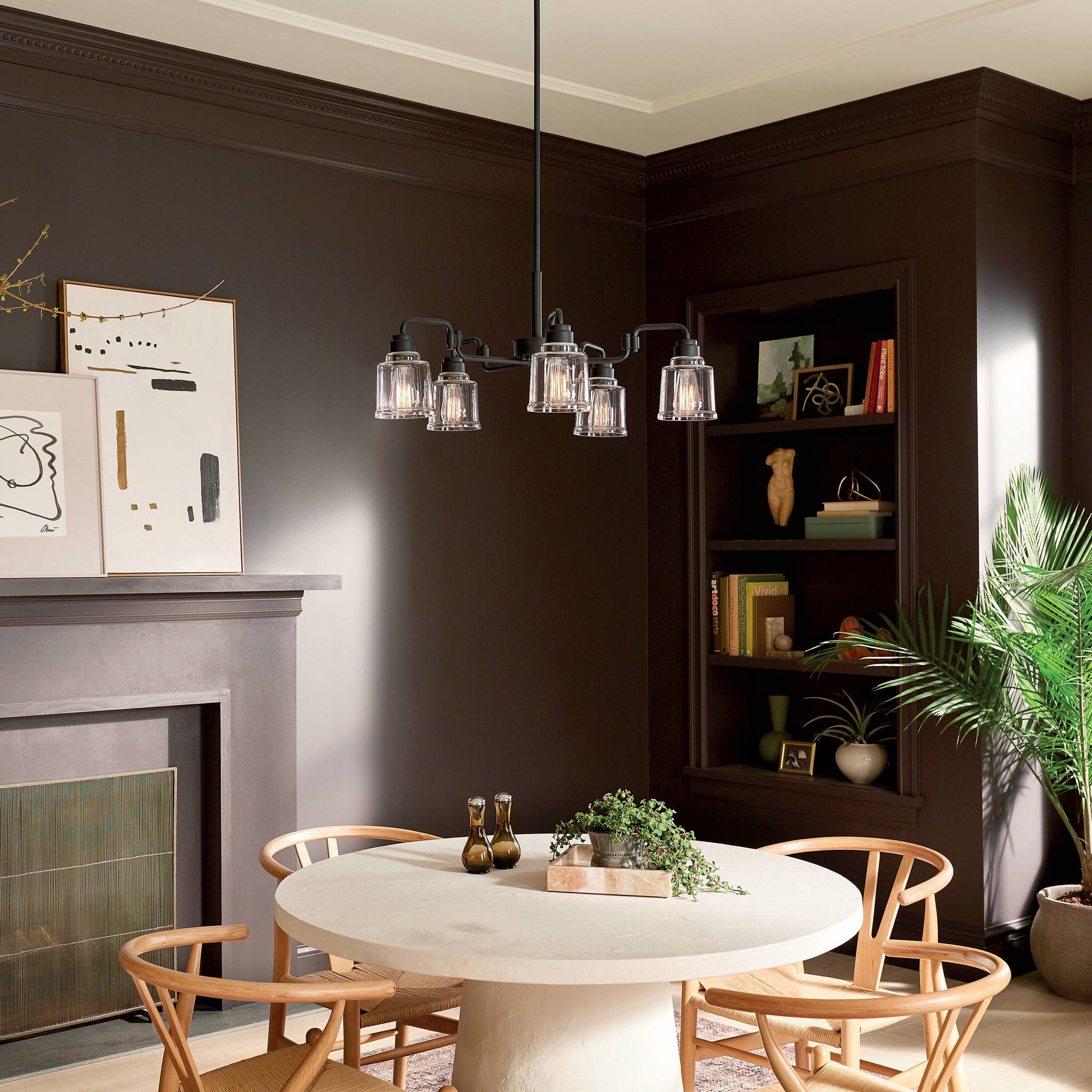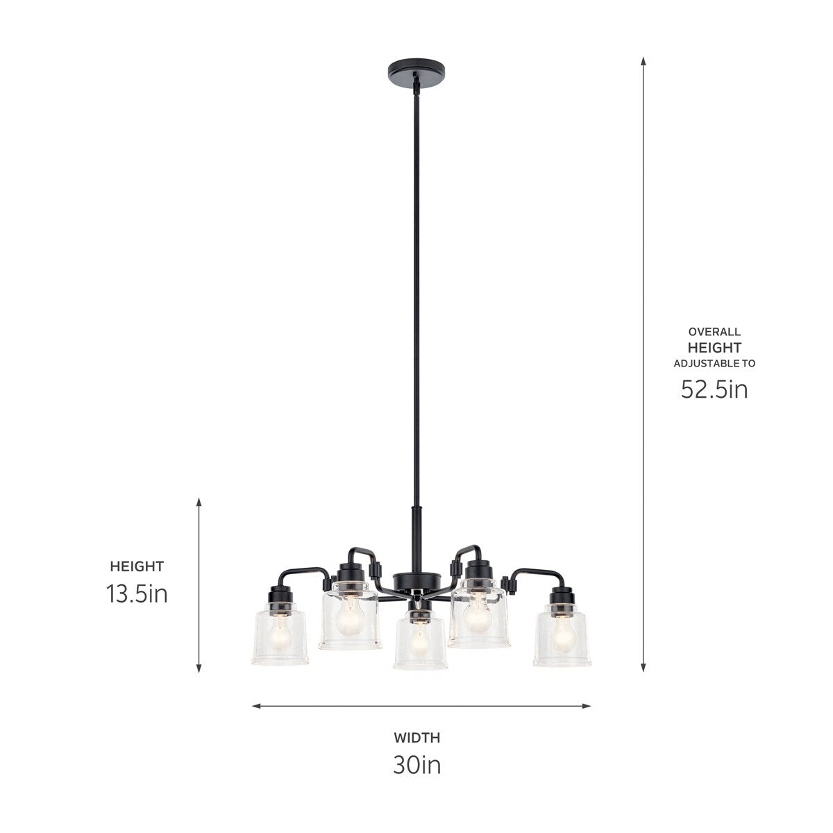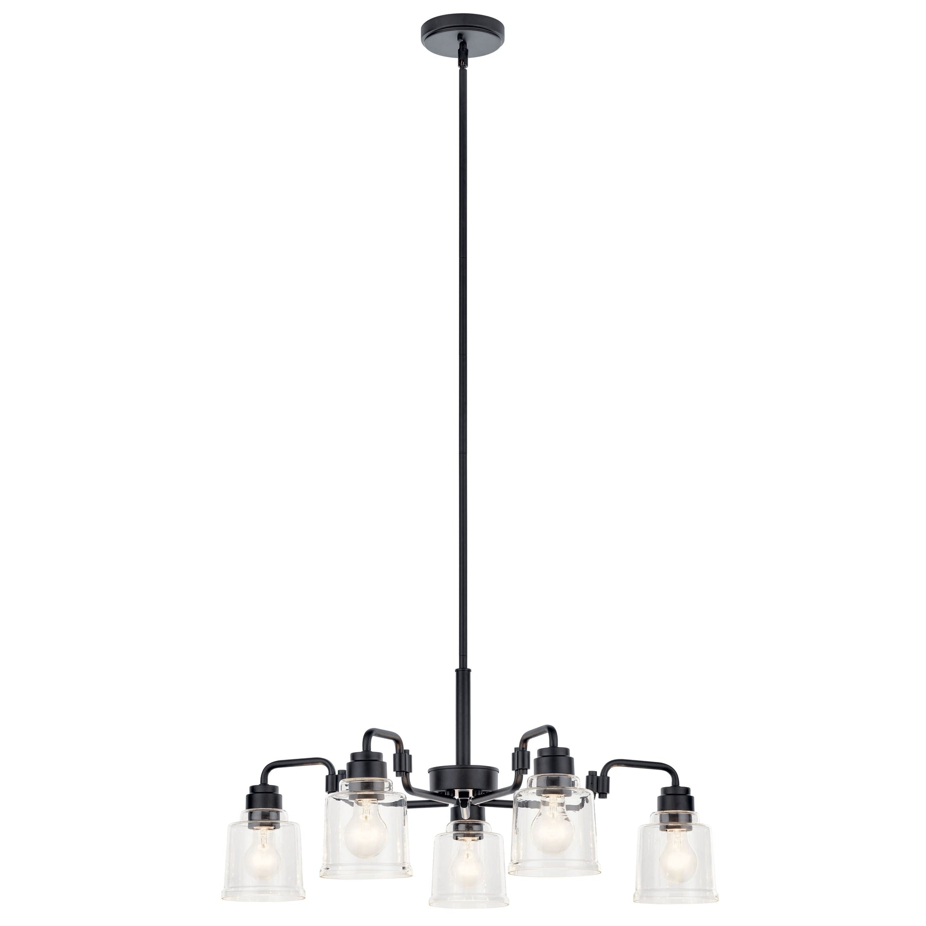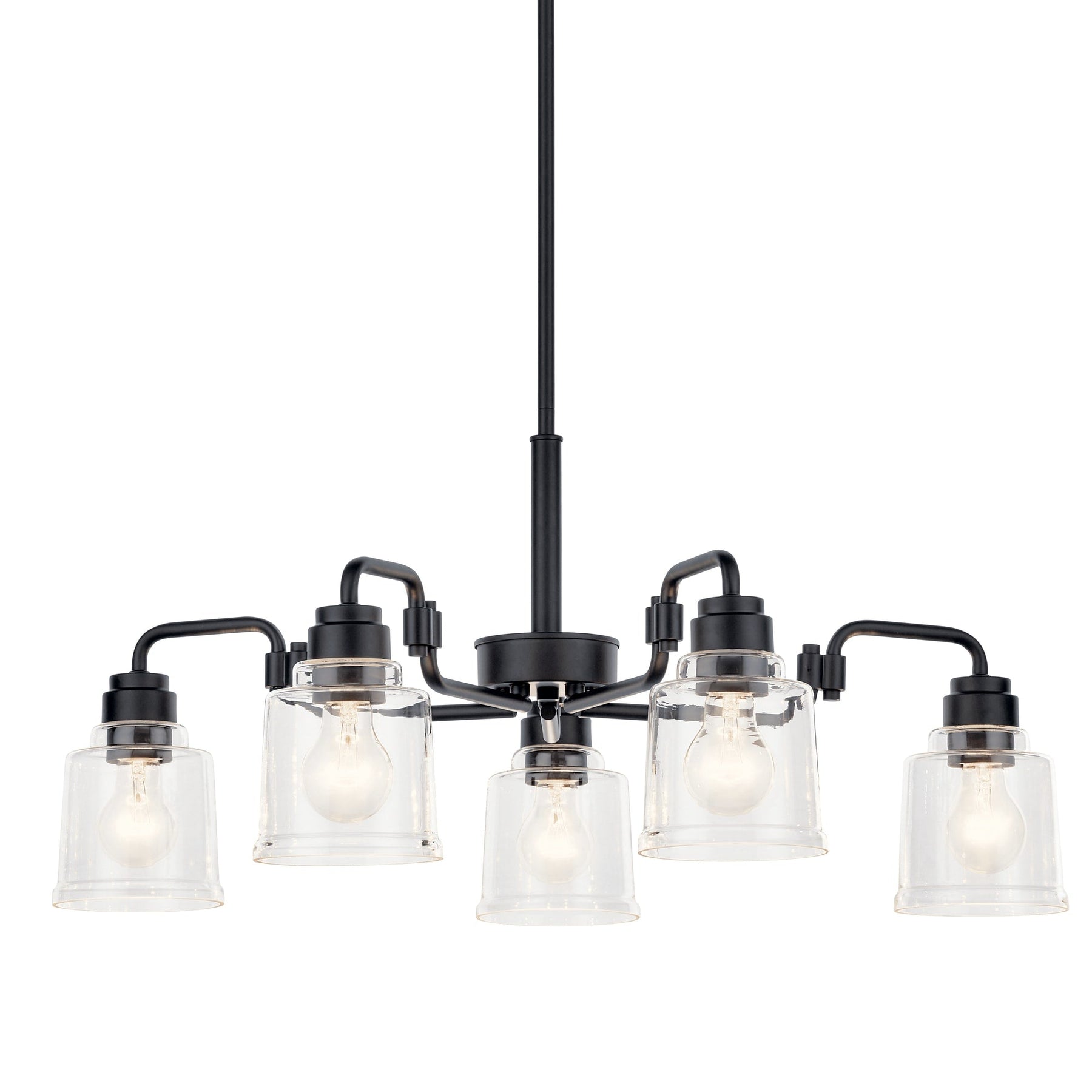 Elevate your space with the Kichler Aivian 5-Light Vintage Chandelier, a masterful blend of classic charm and modern sophistication. Its black finish and clear glass shades create a versatile piece that adapts beautifully to both rustic and contemporary settings, offering customizable elegance with adjustable hanging lengths.
