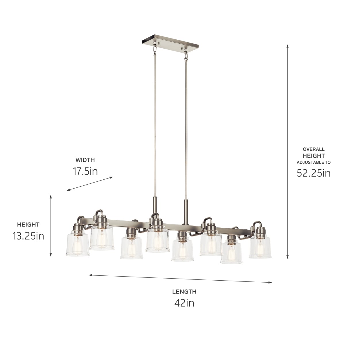 Illuminate your space with the Kichler Aivian 8-Light Brushed Nickel Vintage Chandelier. Combining vintage charm with modern sophistication, this chandelier features a brushed nickel finish and clear glass shades, making it the perfect centerpiece for rustic or contemporary interiors. Its adaptable design promises to enhance any setting with refined elegance and a touch of bold style.