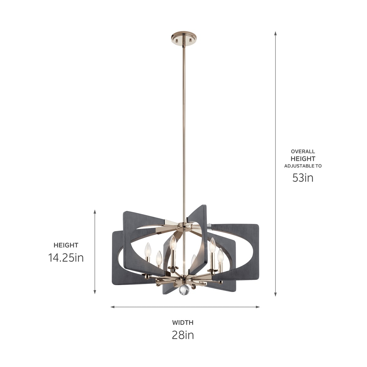 Dimensional Design: Features a blend of polished nickel and driftwood grey finishes.