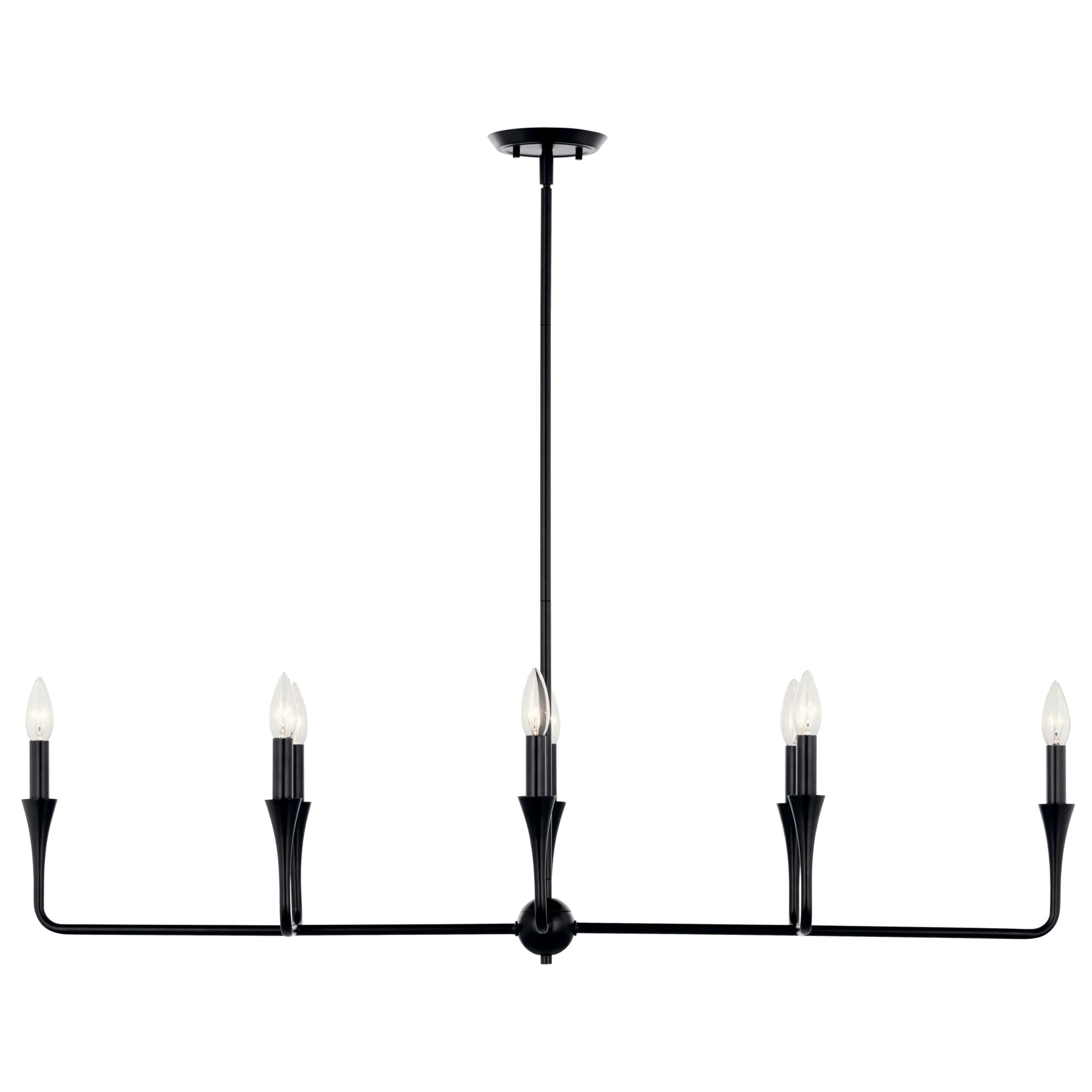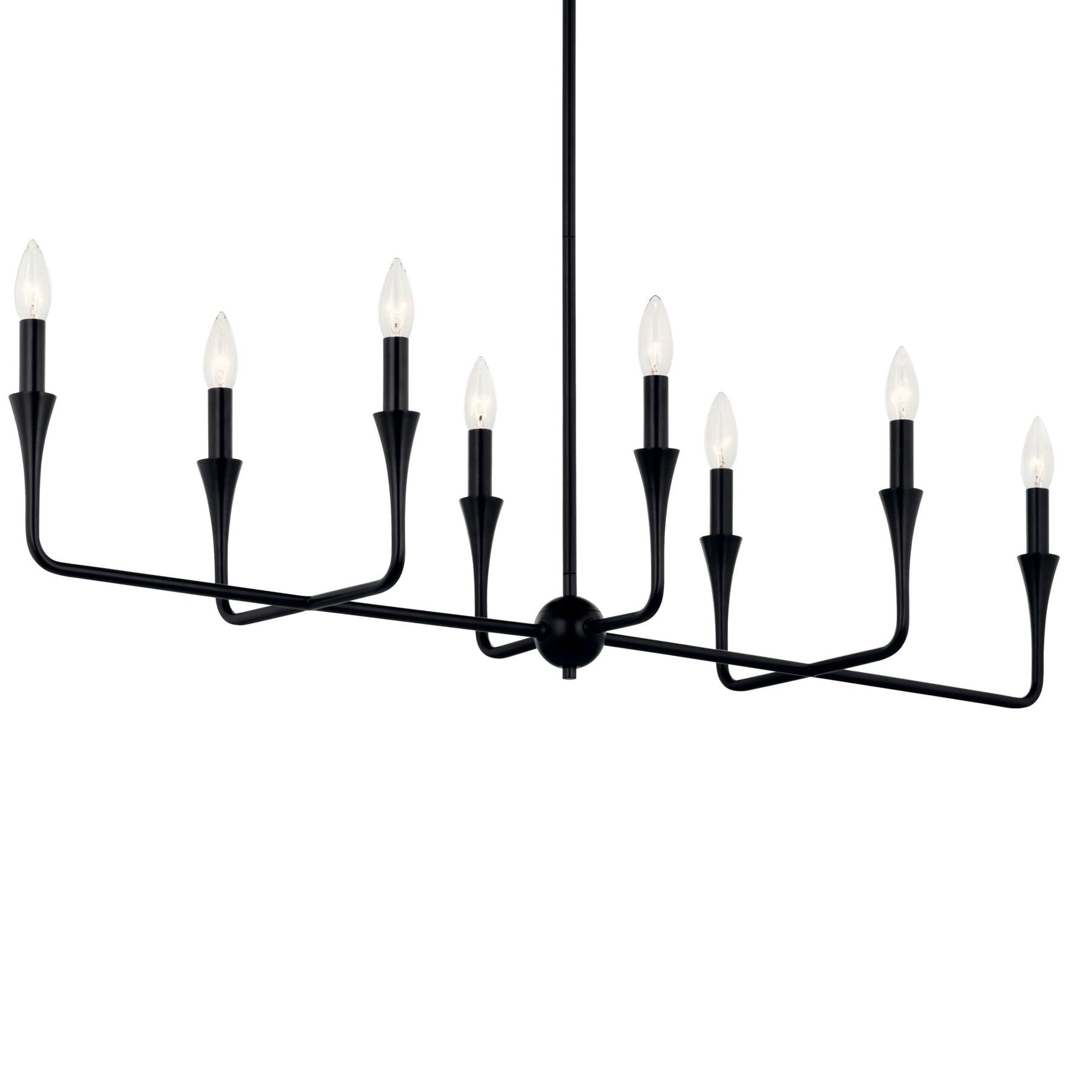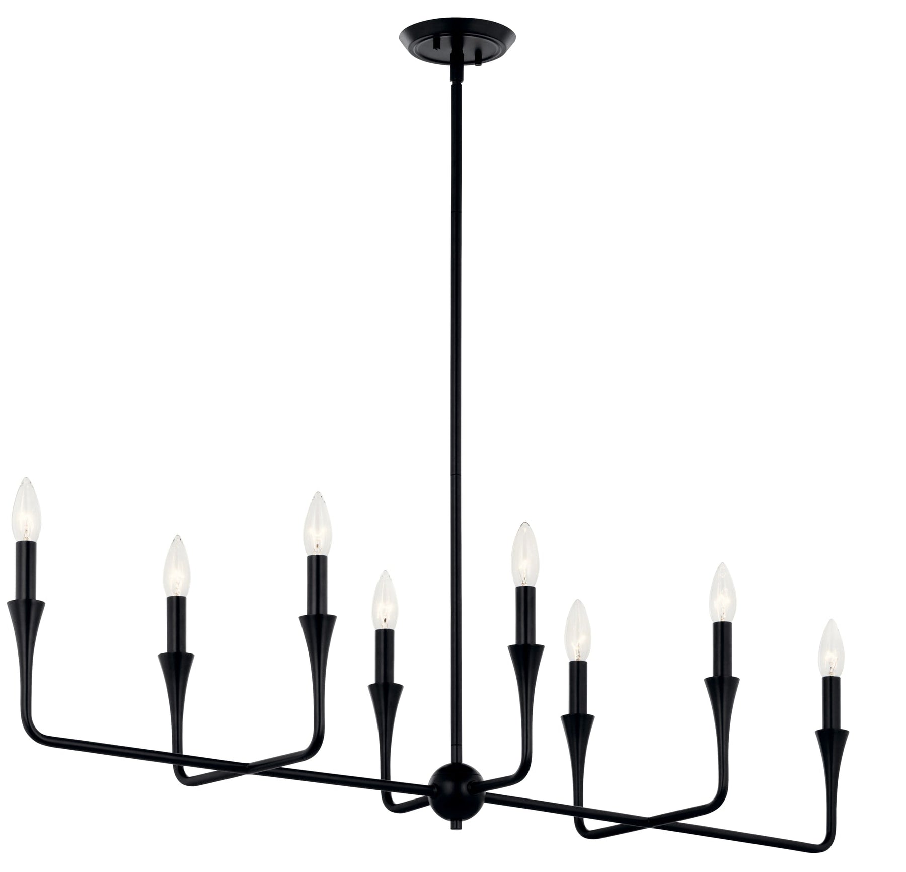 The Kichler Alvaro 8-Light Modern Chandelier is the epitome of luxurious elegance fused with contemporary style. Perfectly designed to illuminate with sophistication, this fixture features a dynamic silhouette and a unique tapered accent that starts at the canopy and blooms with light. Elevate your dining or kitchen ambiance with its stylish bare bulb design.