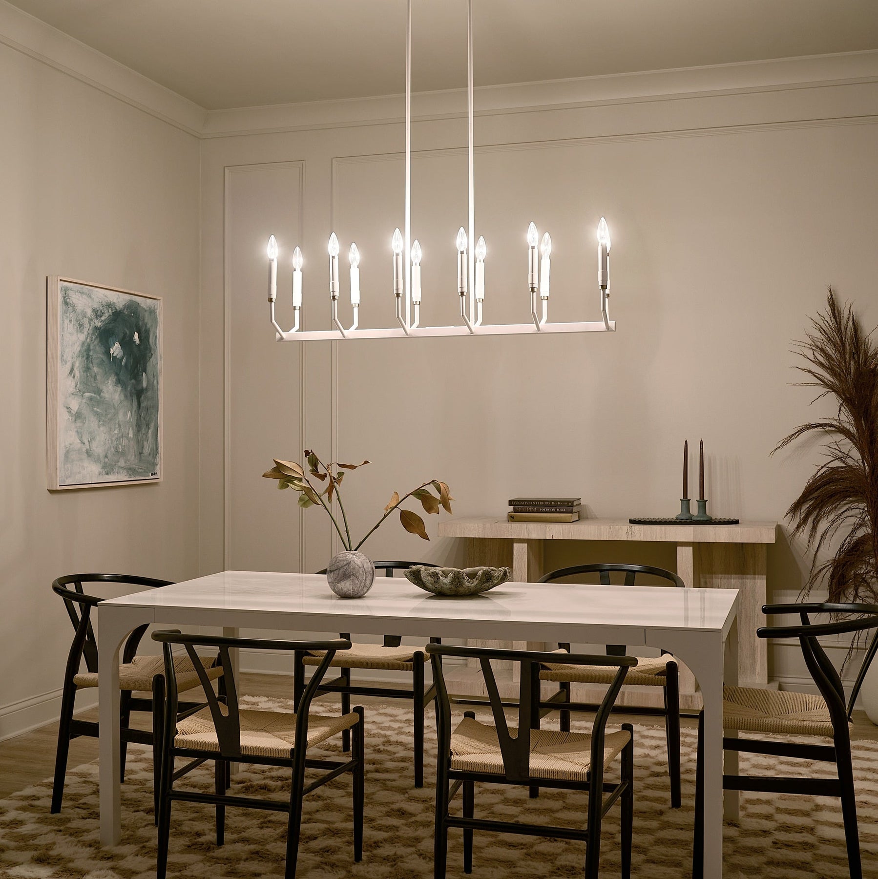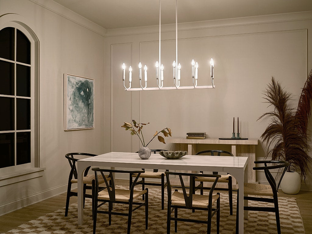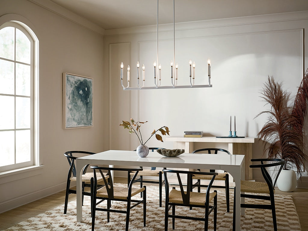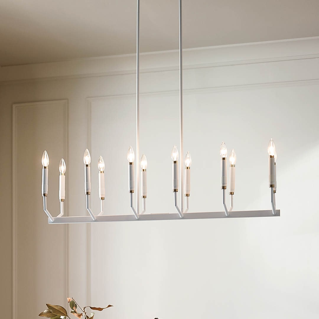Transform your space with the Kichler Armand 12-Light Chandelier, featuring a sleek white finish and elegant design. This modern centerpiece provides stunning ambient lighting and enhances any room with its versatile style, accommodating soft contemporary, mid-century, or industrial aesthetics.