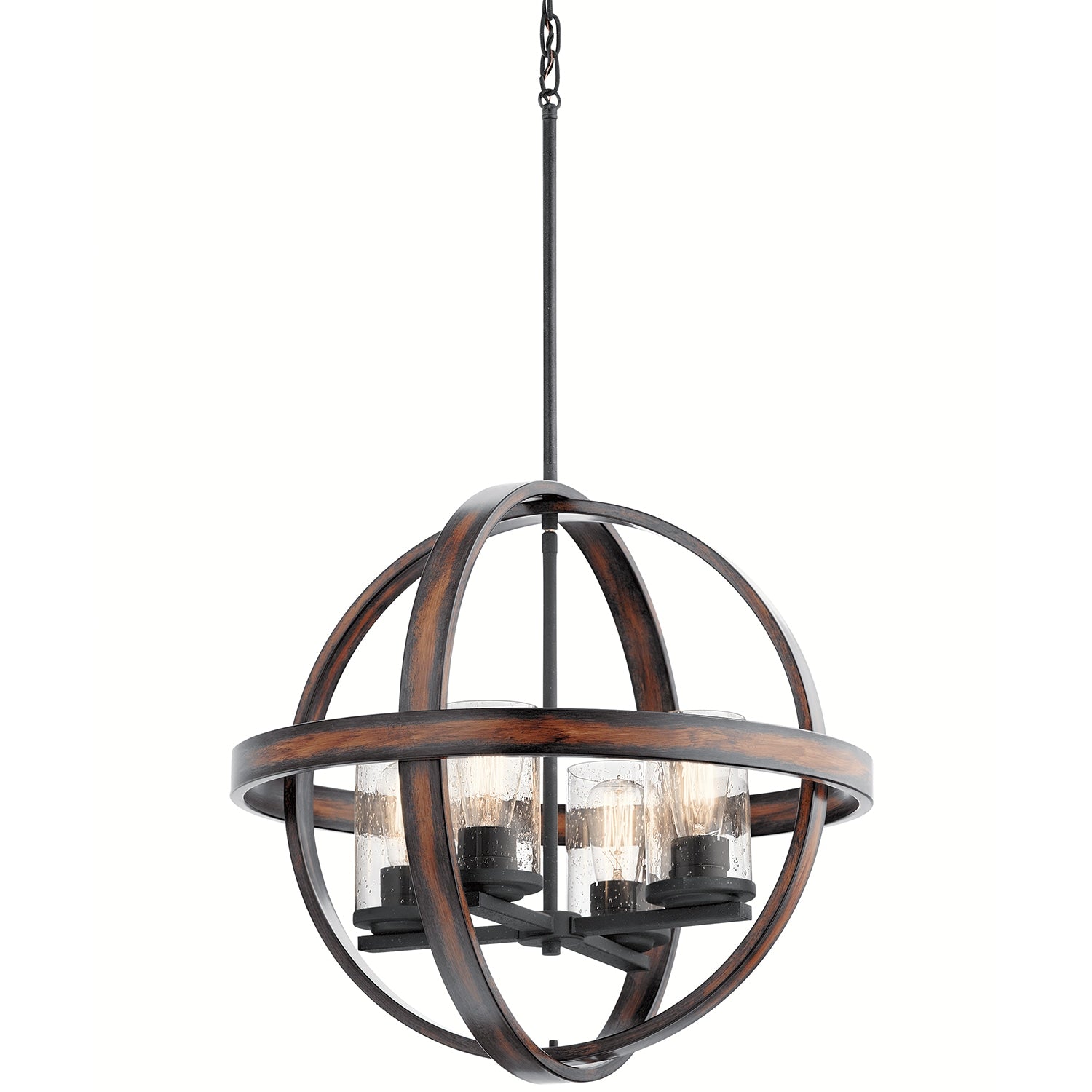 Kichler Barrington 4-Light Distressed Black and Wood Tone Rustic Seeded Glass Globe Medium Hanging Pendant Light