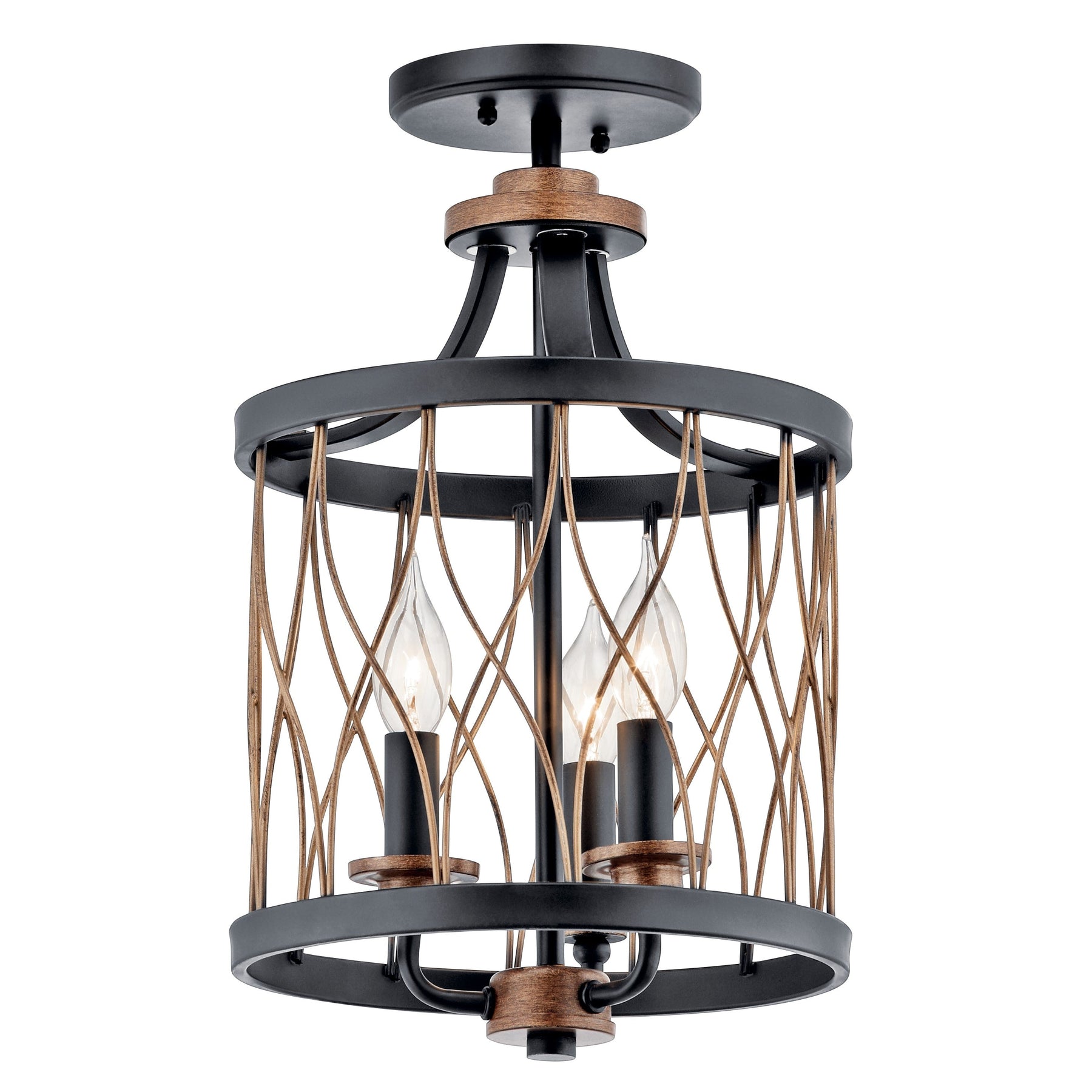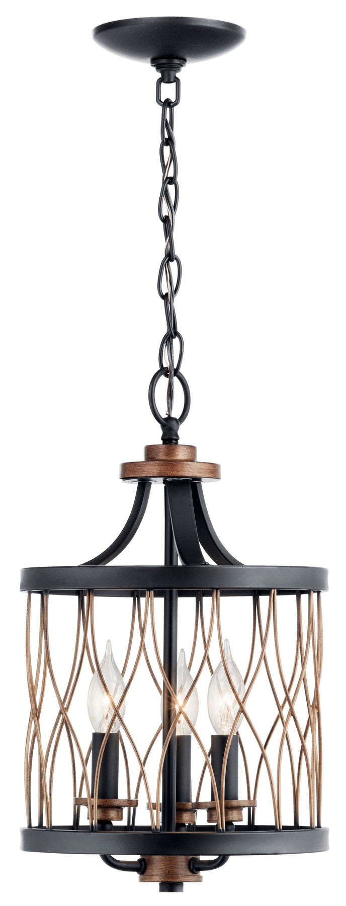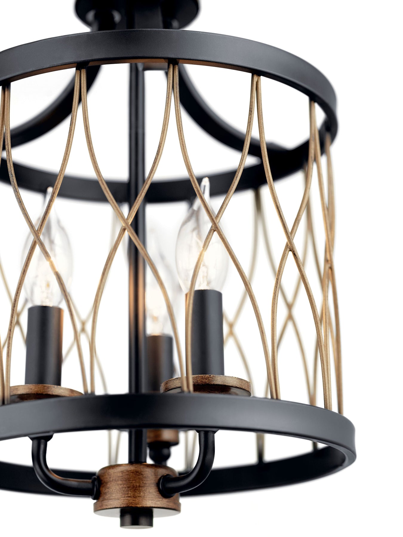 Illuminate your space with the Kichler Brookglen 3-Light Pendant, showcasing a blend of black and gold tones for a captivating French country charm. Designed for versatile use as a hanging pendant or a semi flush, this light is ideal for inducing warmth and elegance into any room.