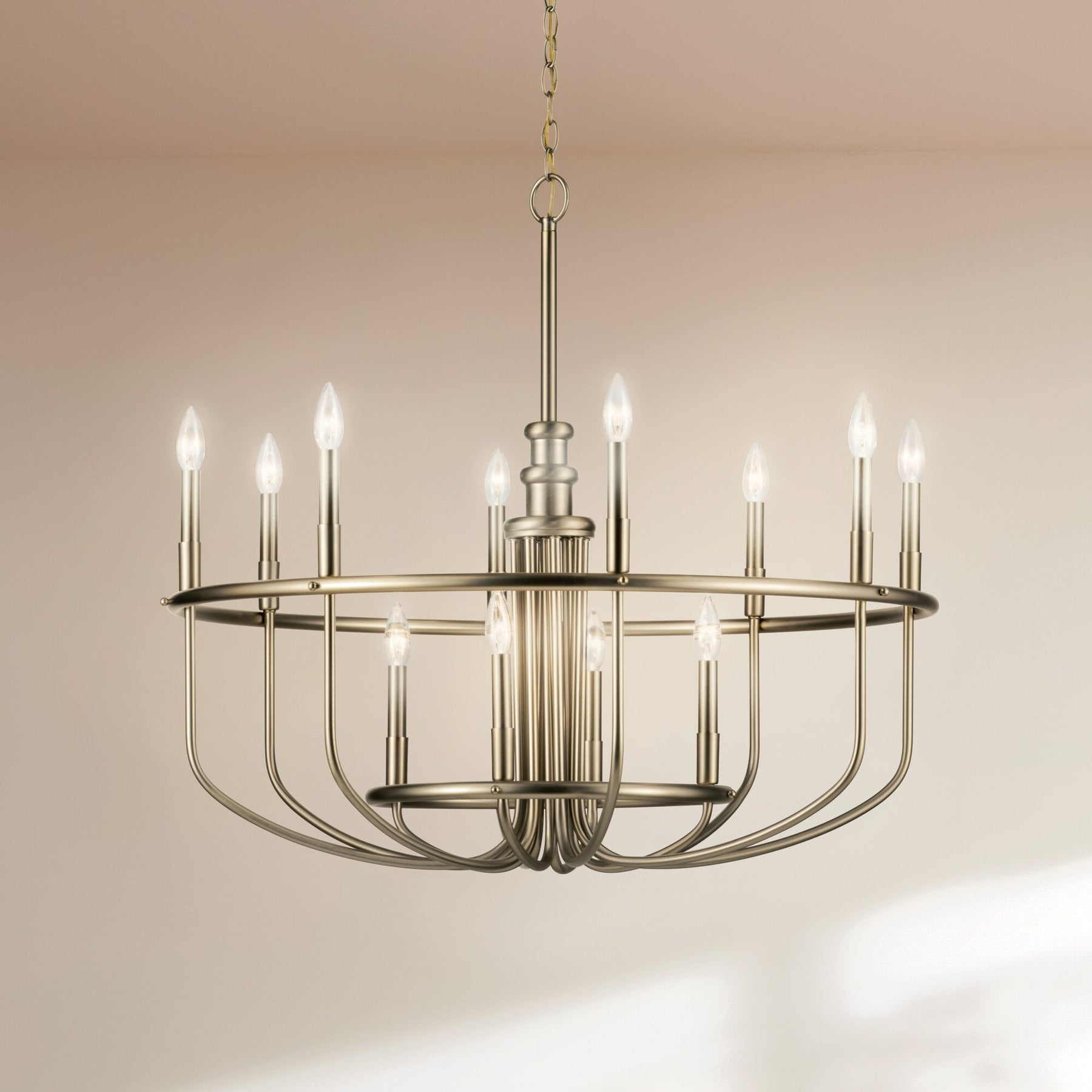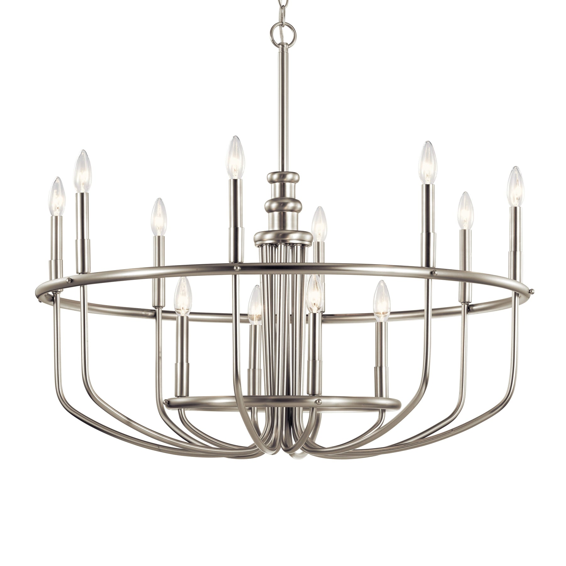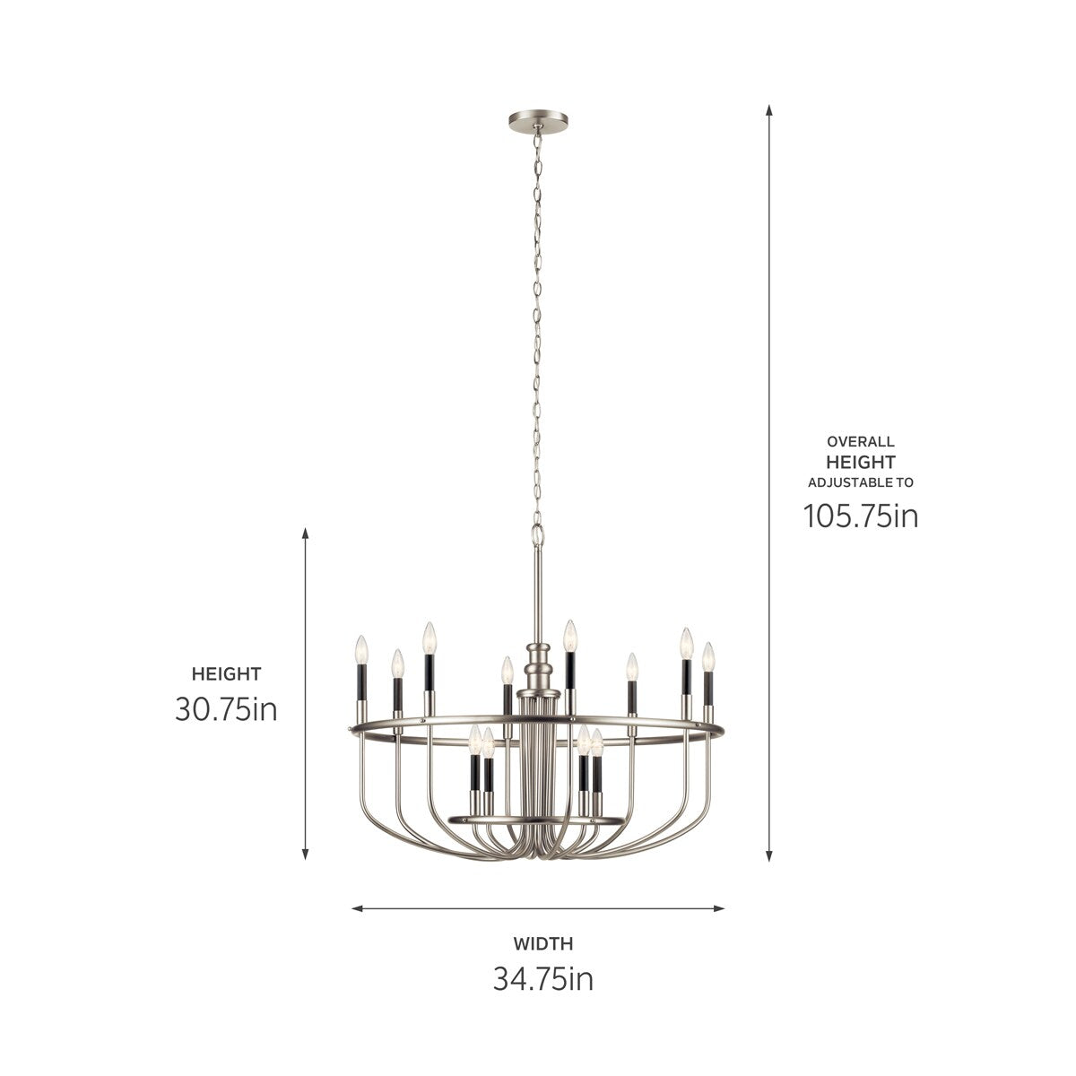 Illuminate your space with the timeless elegance of the Kichler Capitol Hill 12-Light Chandelier. Its brushed nickel finish and interchangeable sleeves offer a versatile, sophisticated look that complements traditional and modern décors alike. Perfect for large dining areas, foyers, or living rooms, this chandelier provides exquisite ambient lighting.