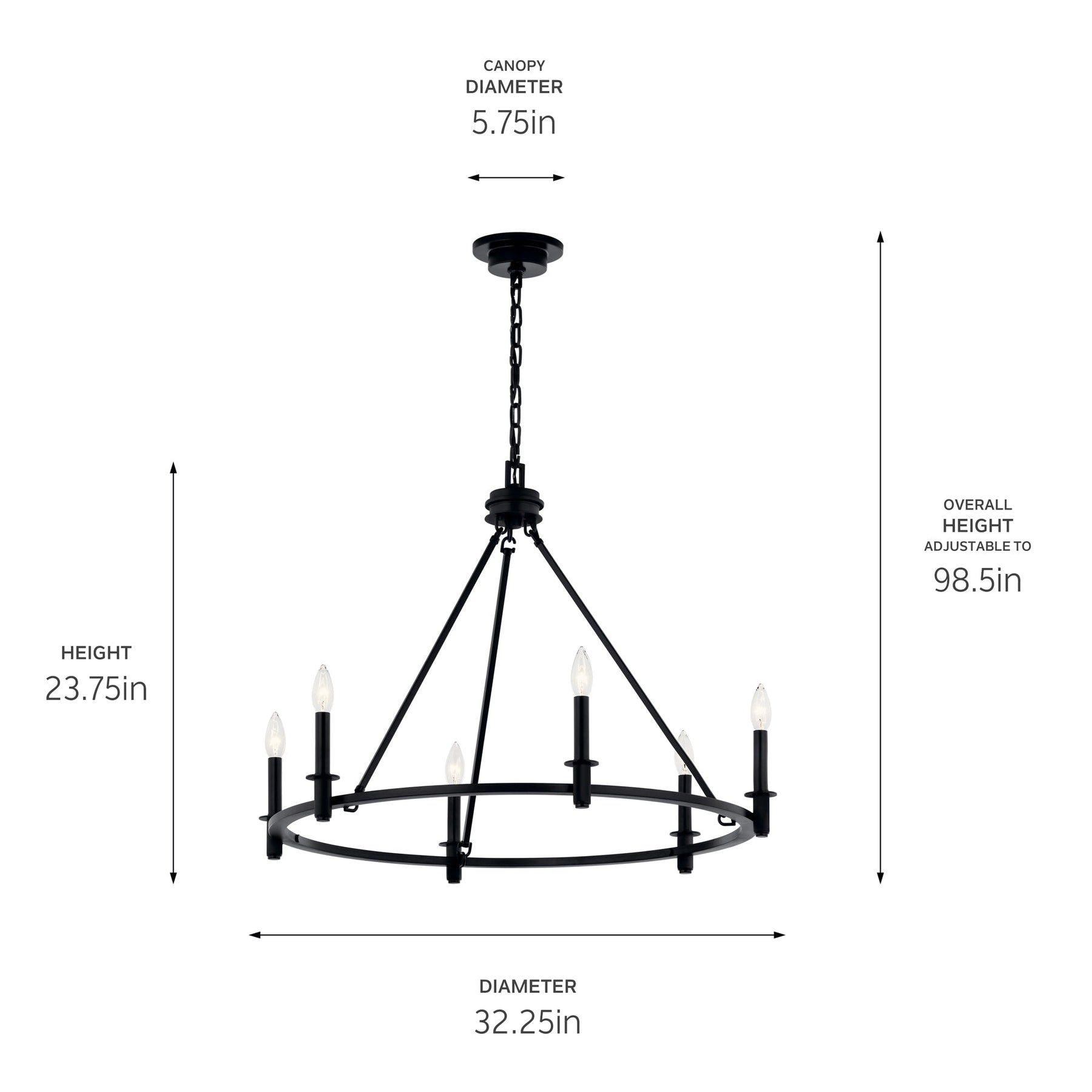 Kichler Carrick 6-Light Black Traditional Bare Bulb Chandelier