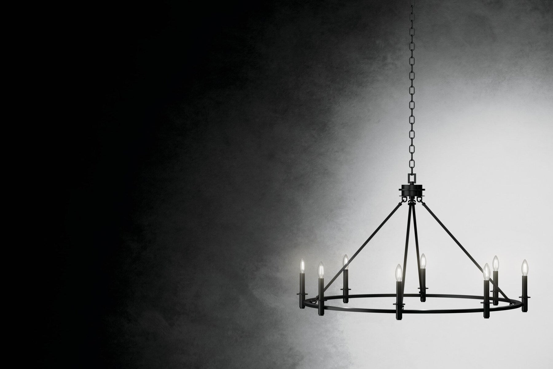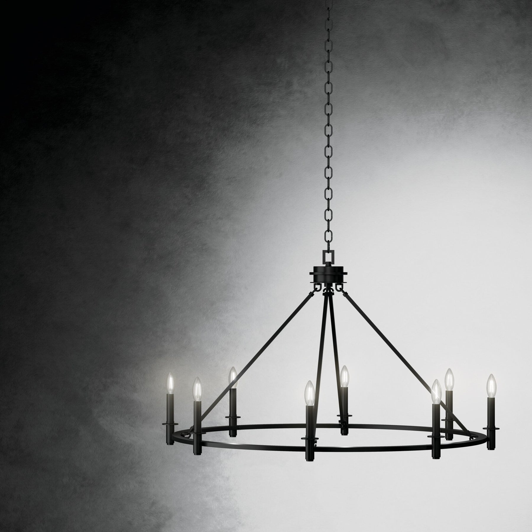 Transform any space with the Kichler Carrick 8-Light Black Traditional Bare Bulb Chandelier. This elegant fixture merges traditional charm with modern brightness, offering a stunning centerpiece for dining rooms, foyers, or bedrooms. Its airy design and black finish complement a variety of interiors, while its open bulbs invite warm illumination into your home.