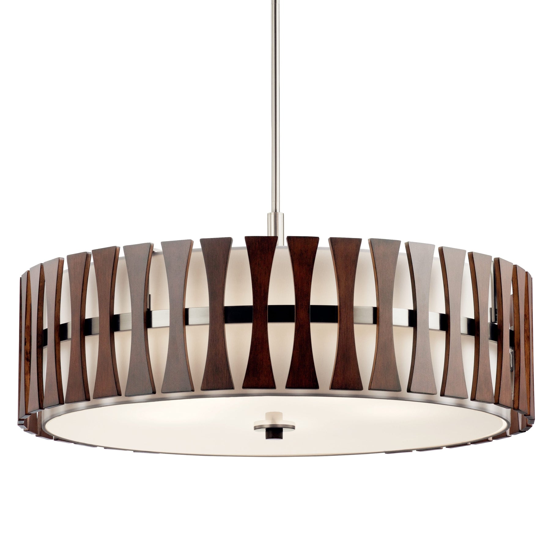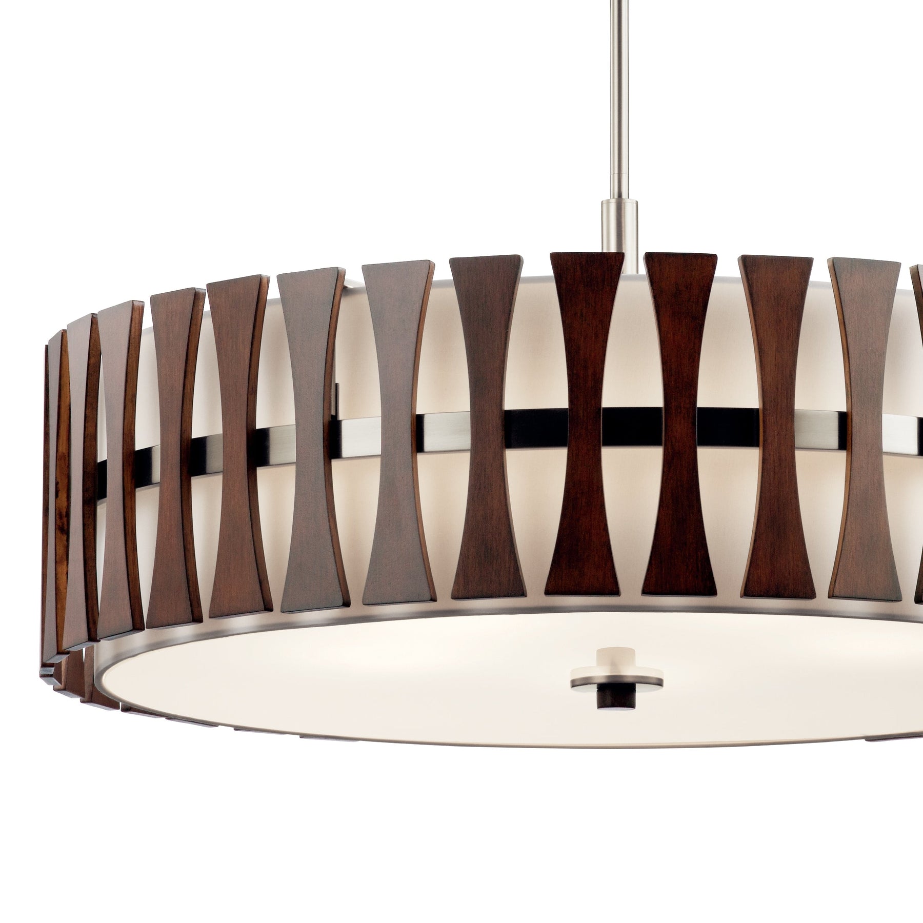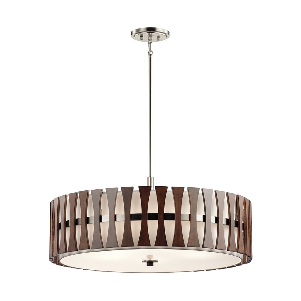 Kichler Cirus 5-Light Auburn Stained Transitional Etched Glass Drum Large Hanging Pendant Light