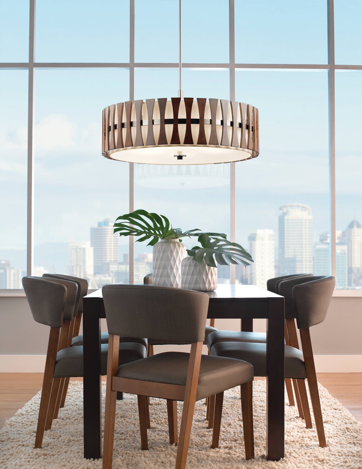 Elevate your space with the Kichler Cirus 5-Light Auburn Etched Glass Pendant. Featuring a modern drum design, this fixture effortlessly combines mid-century aesthetics with contemporary flair. Perfect over dining tables or kitchen islands, its adjustable height and versatile mounting options cater to diverse interior styles.