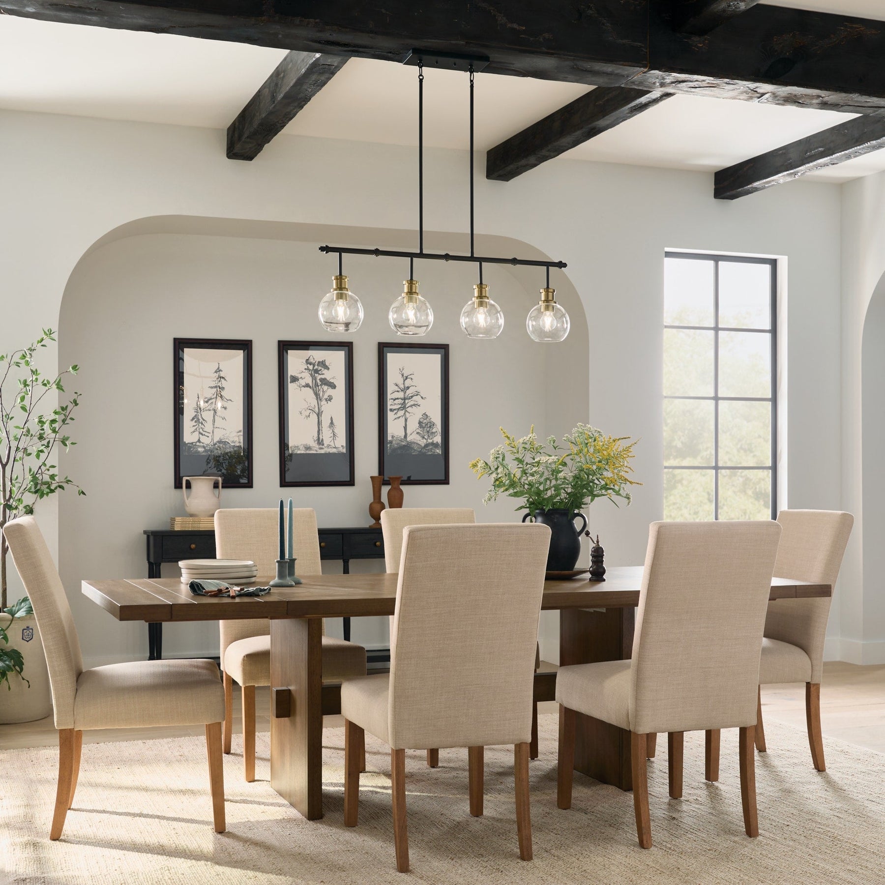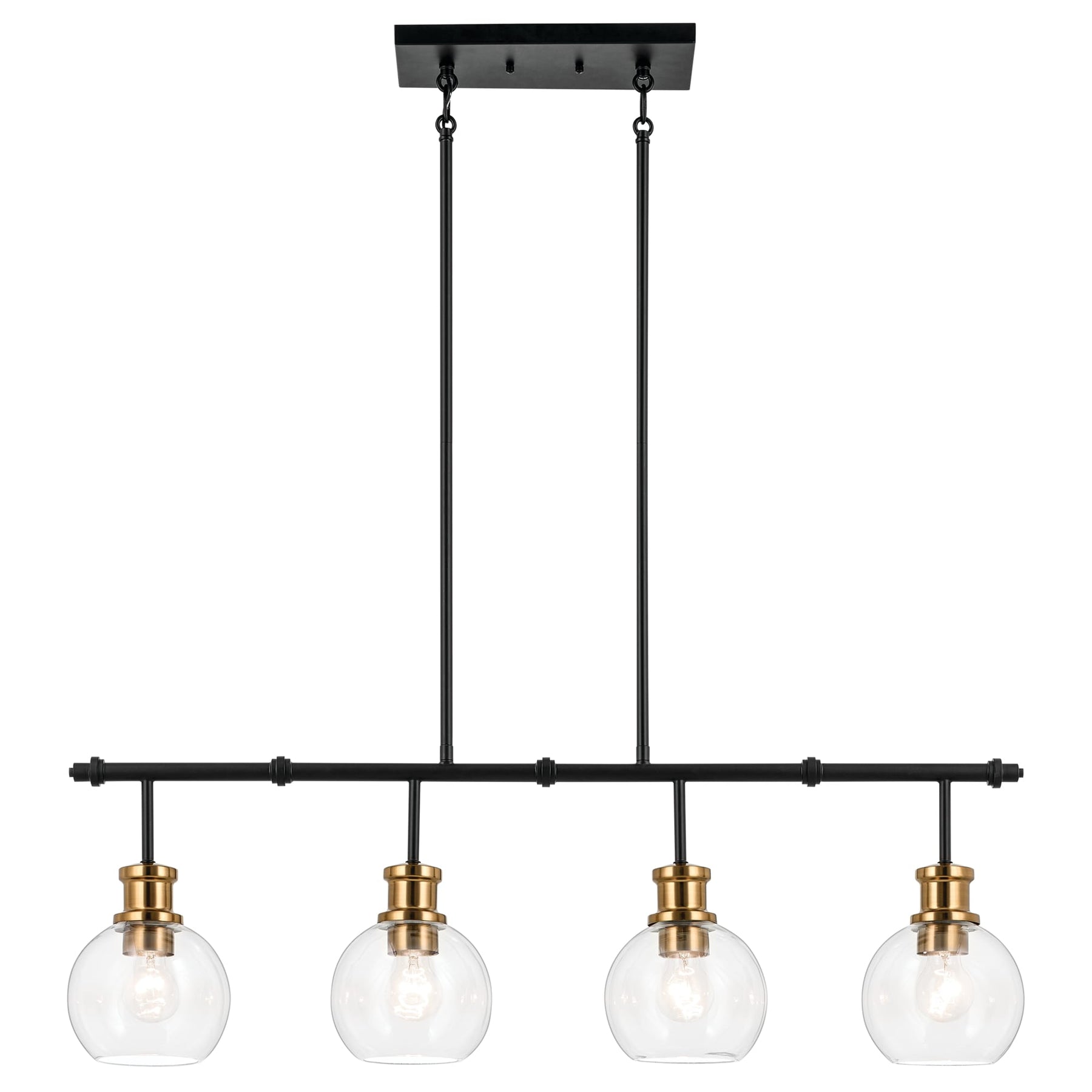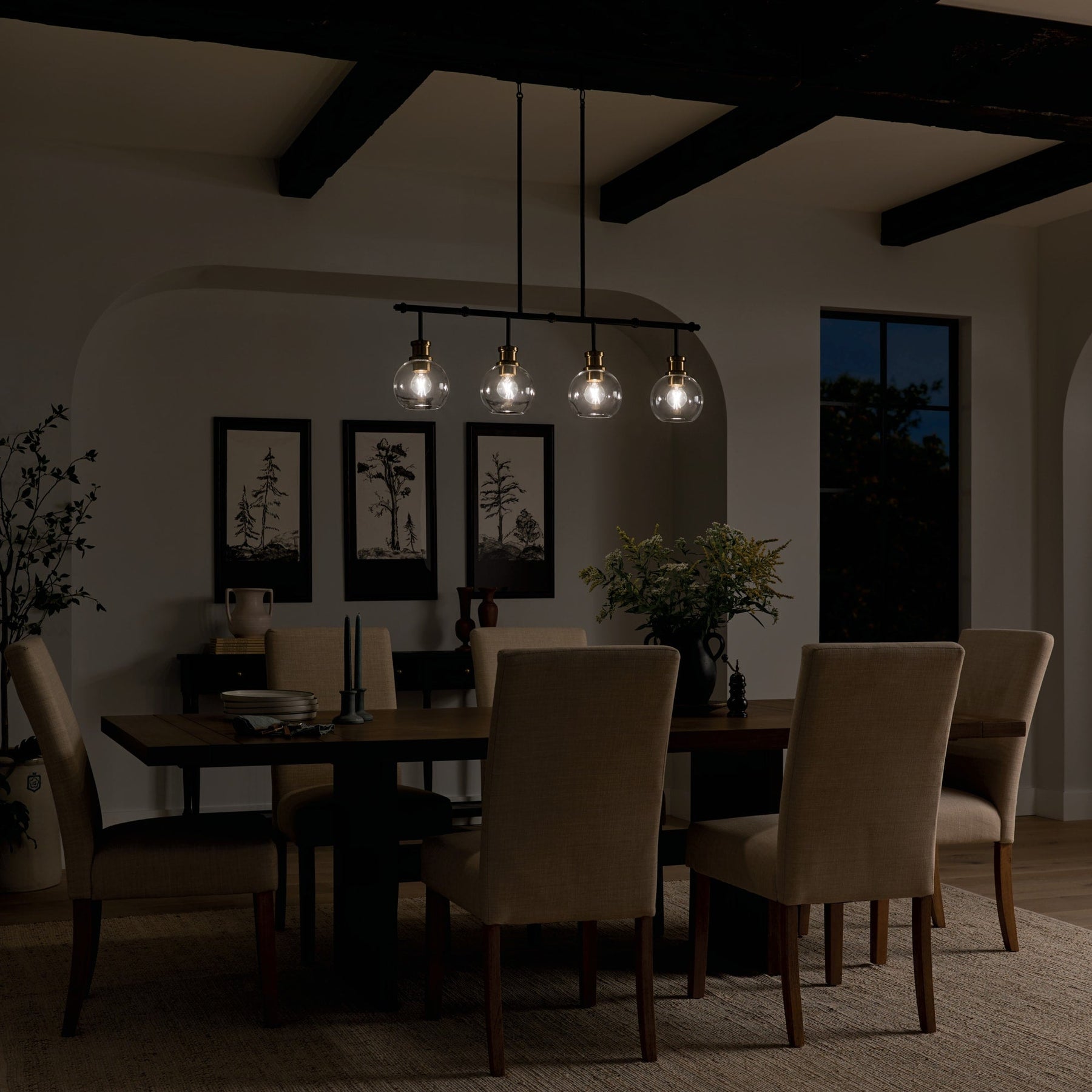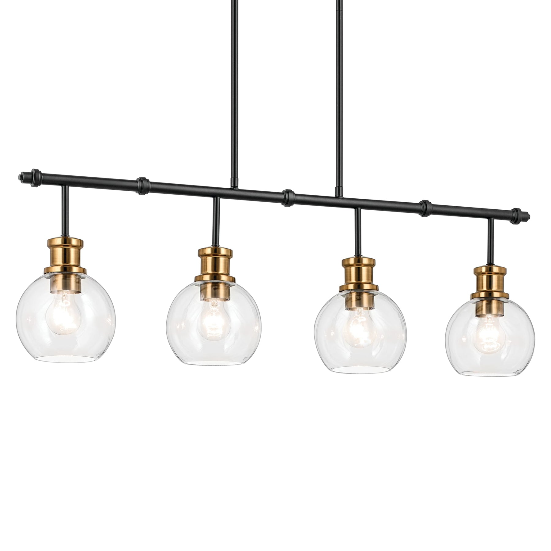 Elevate your space with the Kichler Clove 4-Light Black Vintage Chandelier. This chandelier masterfully combines vintage-inspired charm with timeless elegance, featuring black steel construction and clear glass shades ideal for various interior styles. Its adjustable height and compatibility with sloped ceilings make it a versatile addition to dining rooms, kitchens, and living spaces.