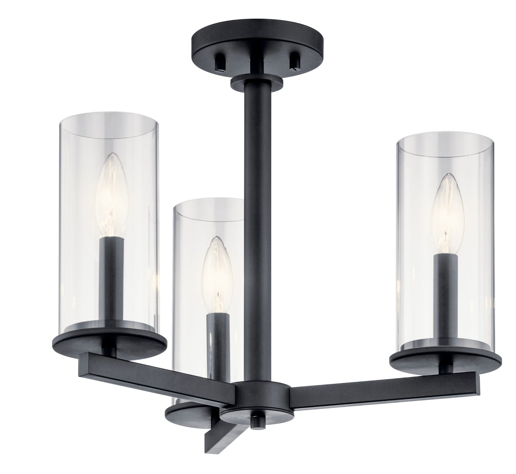 Elevate your living space with the Crosby 3-Light Black Chandelier by Kichler, designed for modern elegance and functional sophistication. This striking fixture combines steel construction with clear glass shades to deliver a contemporary style that enhances any room.