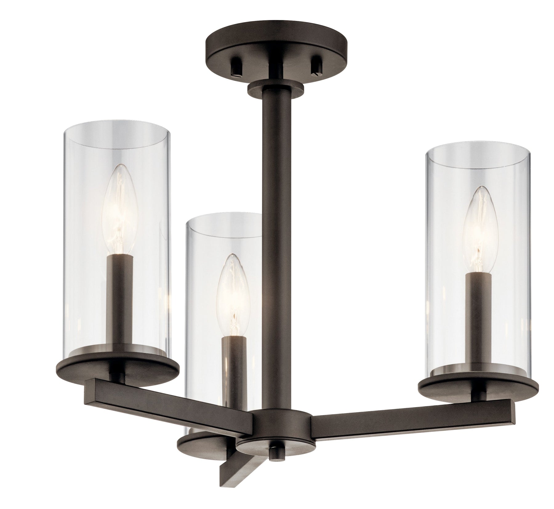 Illuminate your space with the Kichler Crosby 3-Light Modern Chandelier, featuring a versatile design that blends seamlessly with both contemporary and traditional decors. Finished in Olde Bronze with clear glass shades, this elegant fixture can convert from a chandelier to a semi-flush mount, providing customizable lighting for any room.