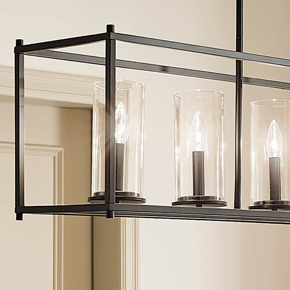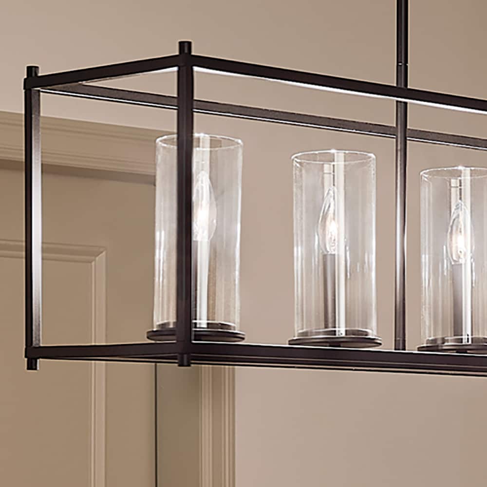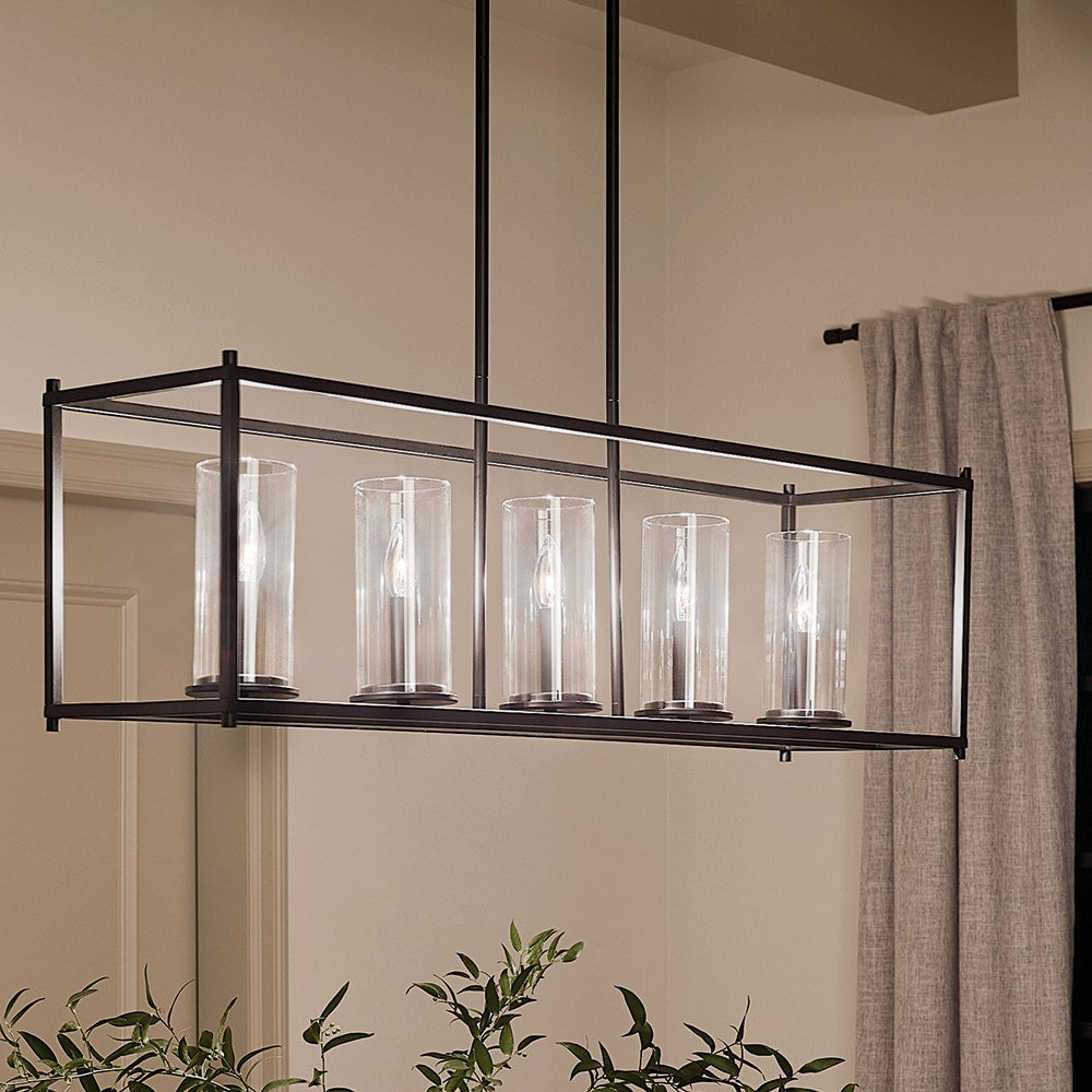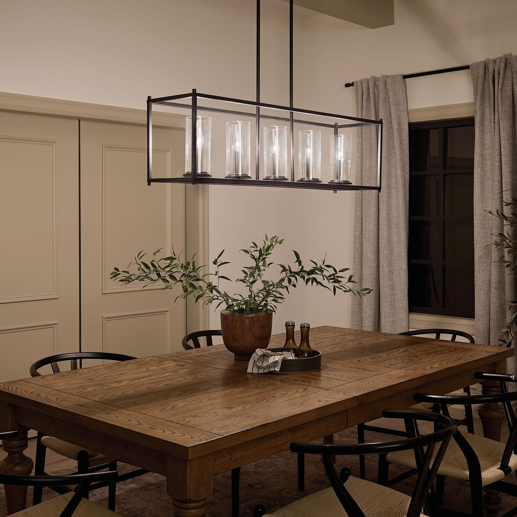 The Crosby 5-Light Black Chandelier introduces an air of minimalist luxury and charm to any space it adorns. Its linear form and clear glass shades offer a striking contrast to the bold black finish, capturing a refined blend of tradition and modernity. Imagine it gracing a dining room, casting a warm, ambient glow that sets the perfect mood for intimate gatherings or lively family meals. As an icon of contemporary design, this chandelier transforms ordinary rooms into extraordinary spaces, setting a standard for modern elegance.