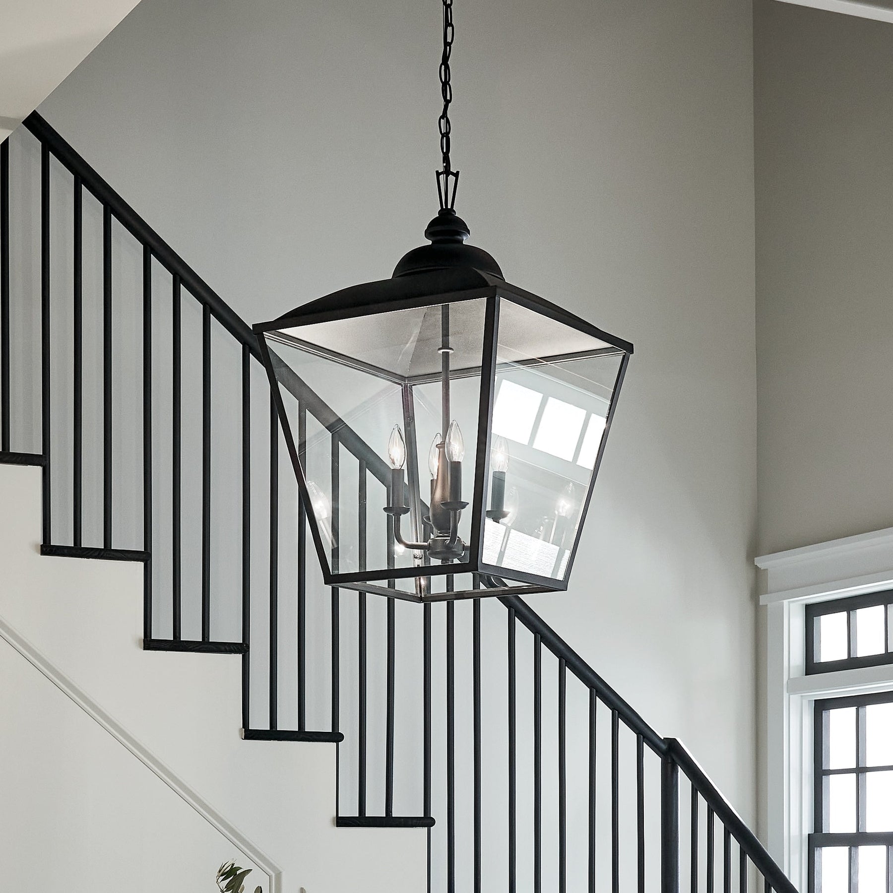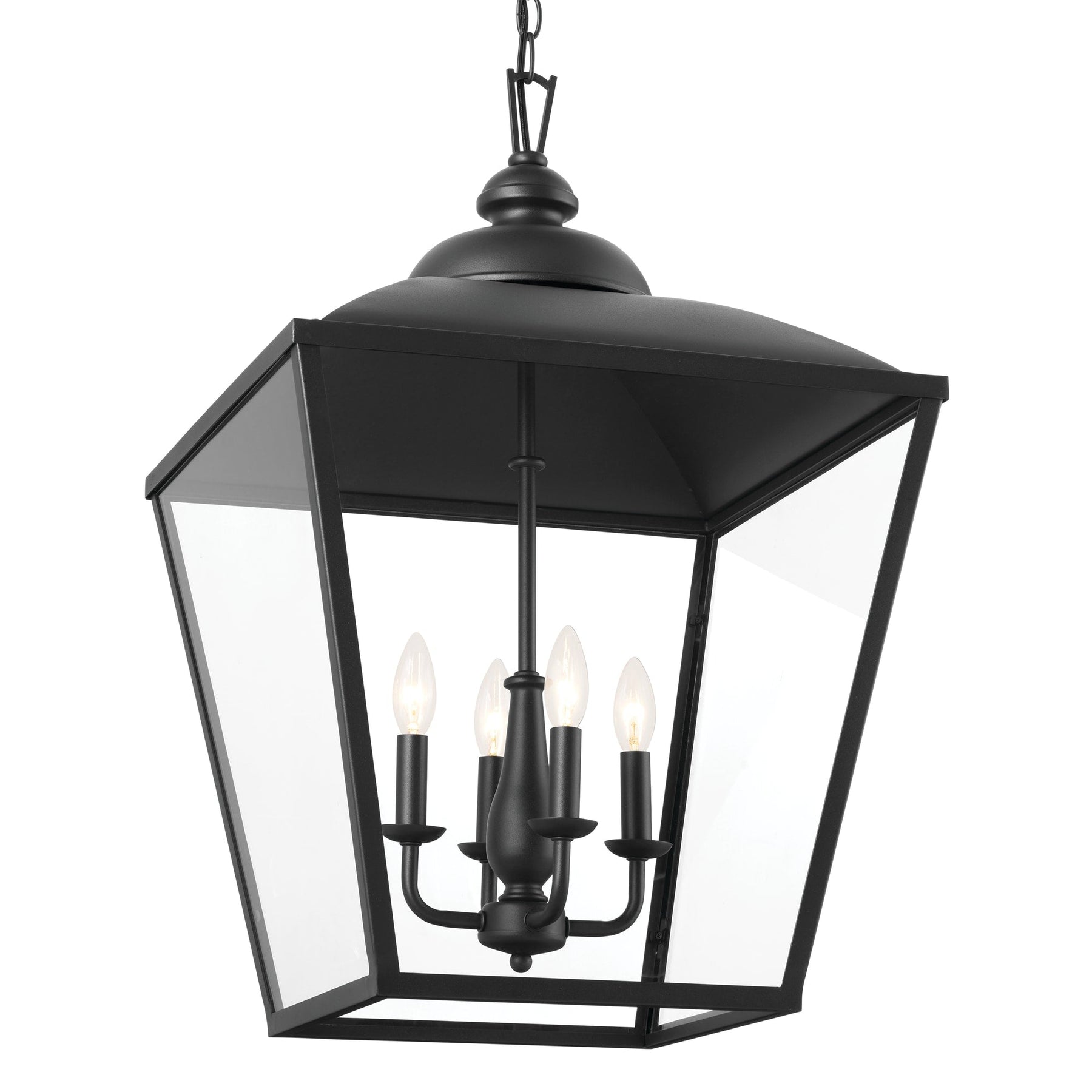 Transform your space with the vintage-inspired Kichler Dame 4-Light Lantern Pendant. Featuring a textured black finish and clear glass panes, this large hanging fixture combines farmhouse elegance with modern functionality. Ideal for foyers, dining rooms, or kitchen islands, it brings a touch of old-world charm into any home.