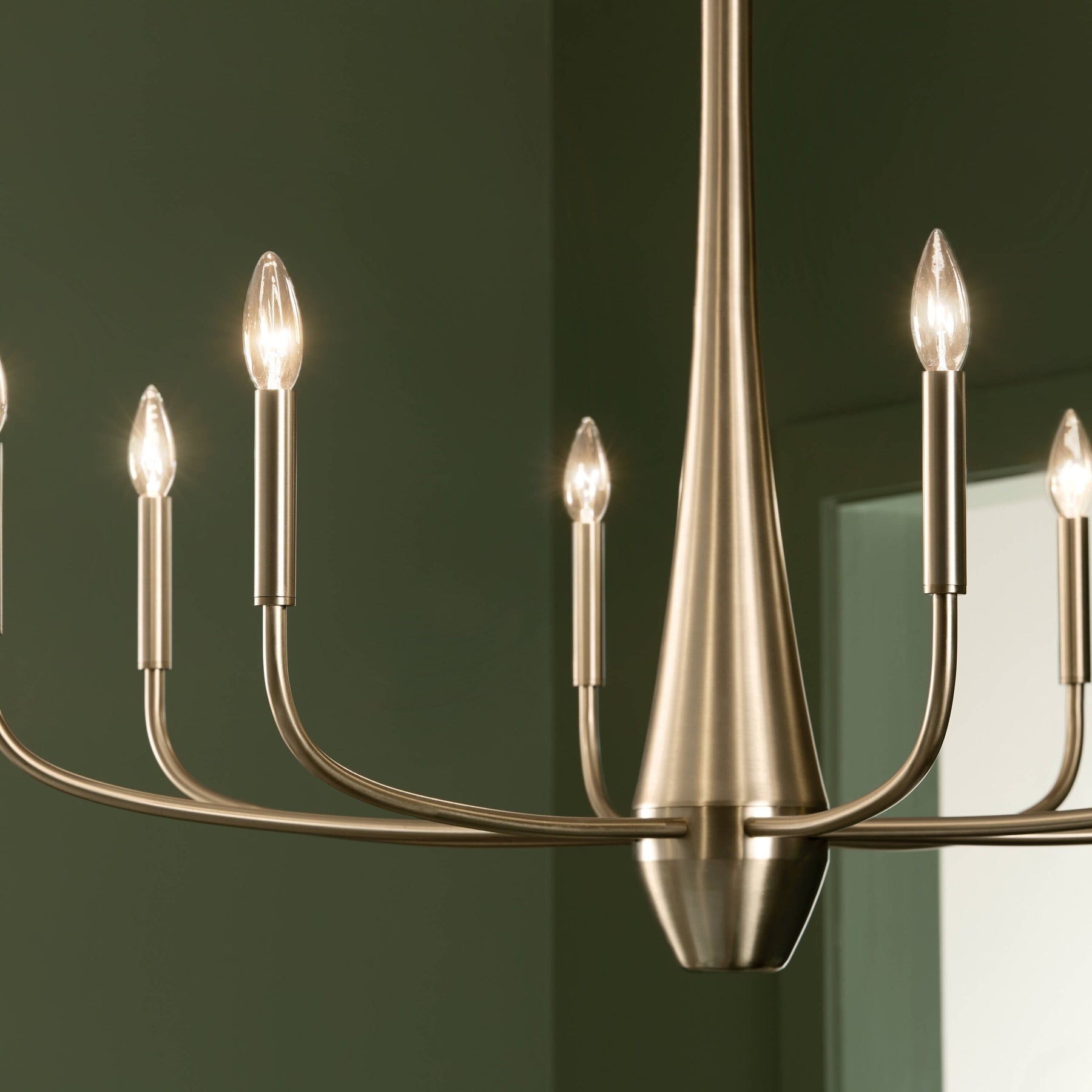 Envision the Kichler Deela Chandelier as a radiant centerpiece that elevates every room into a sublime encounter of light and shadow. Its brushed Champagne Bronze finish shimmers with a gentle elegance, reminiscing the artistry of a carefully composed symphony. Place it above a sweeping dining table or as a focal piece in a grand foyer to captivate the eye and spirit alike. The Deela Chandelier is an epitome of luxurious living, casting a spell of warmth and spectacular serenity in every illuminated corner.