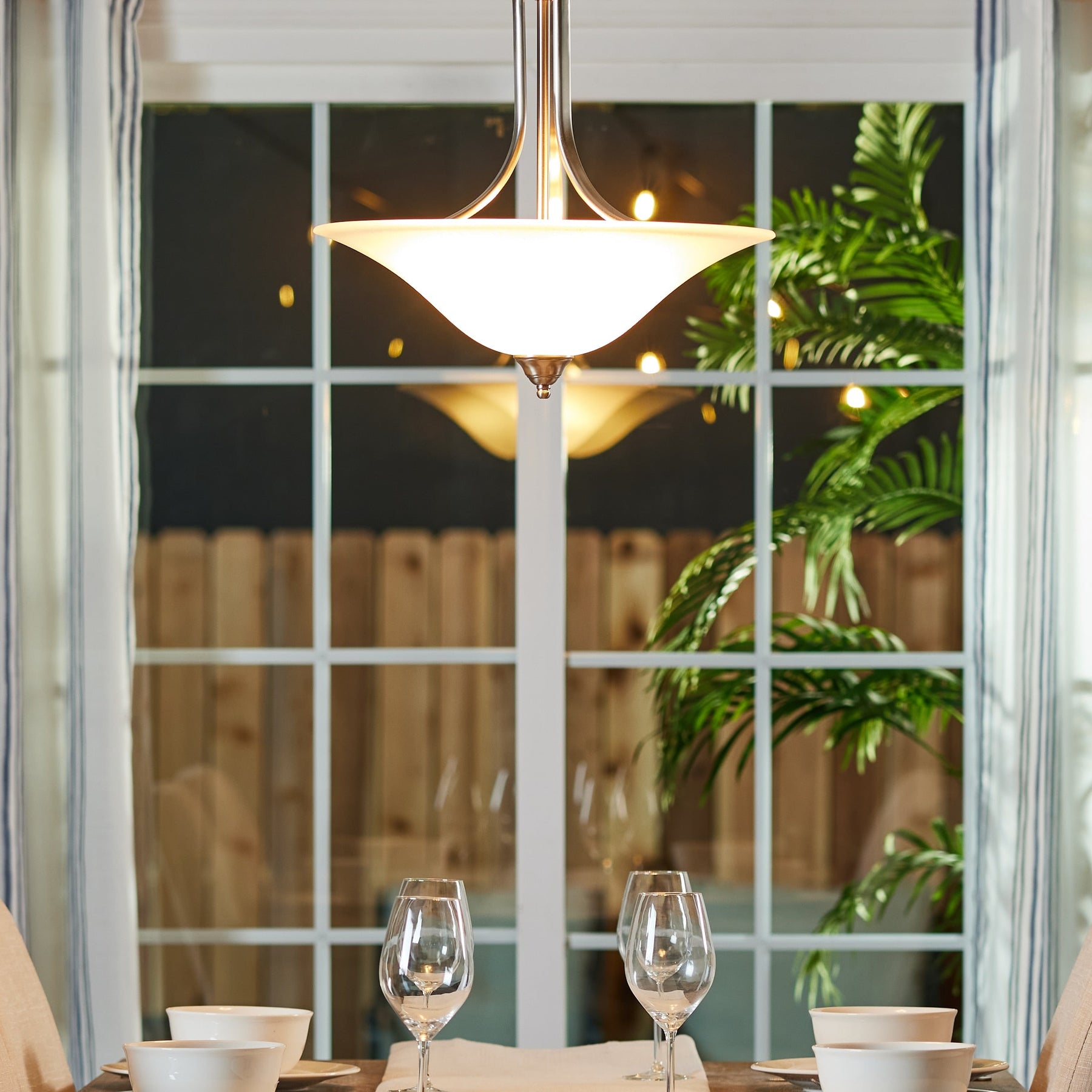 Elevate your space with the Kichler Dover 3-Light Pendant, designed in a sophisticated brushed nickel finish and featuring elegant etched seeded glass. Perfect for transitional and traditional décor, this fixture brings a warm glow to kitchens, dining, or living areas.