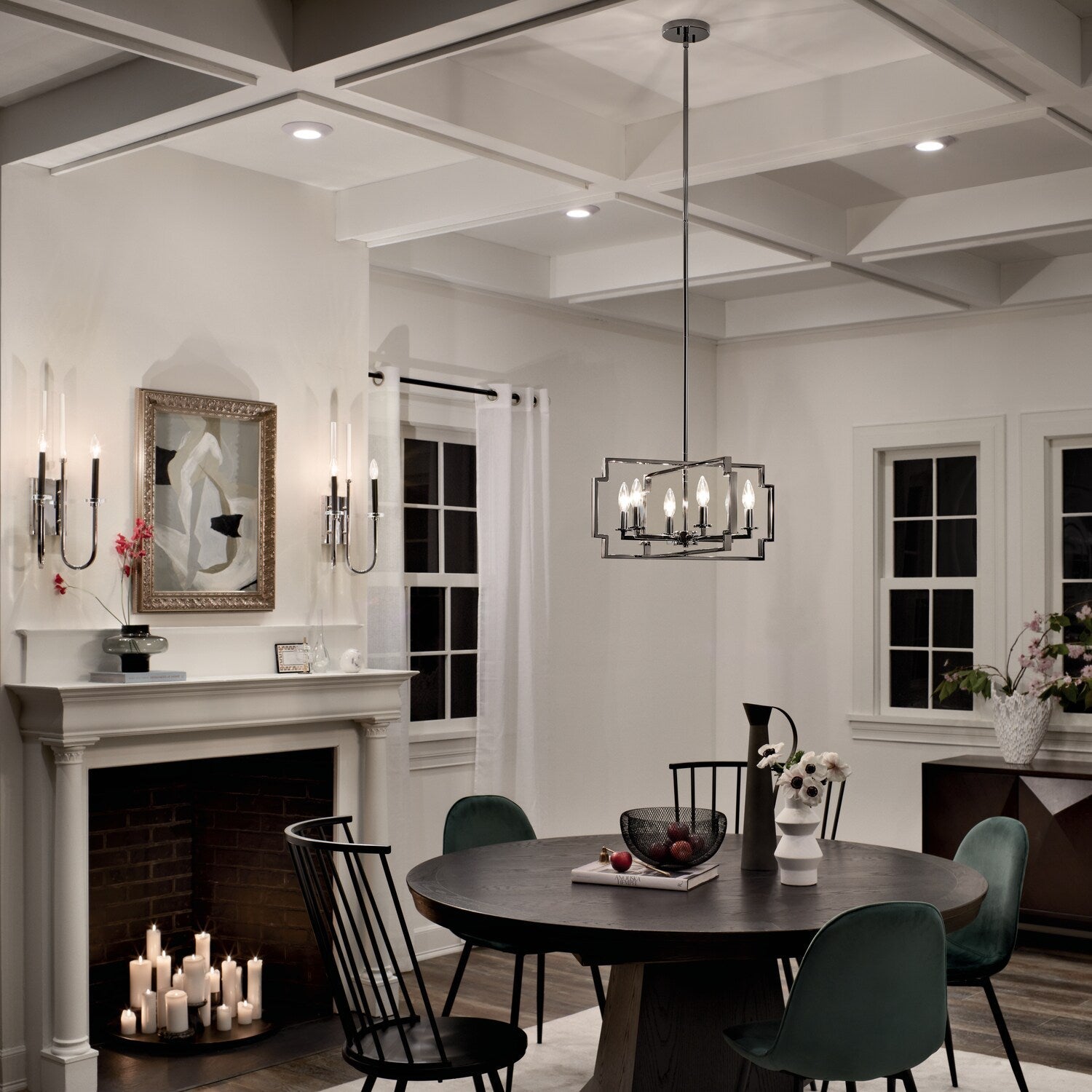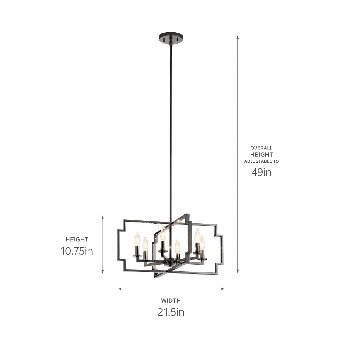 Illuminate your space with modern elegance using the Kichler Downtown Deco Chandelier in Chrome. This stunning fixture features six lights nestled within a sleek frame, perfect for enhancing contemporary or transitional interiors. Flexible in its installation, it effortlessly transforms to meet the needs of any room, from formal dining to casual living spaces.