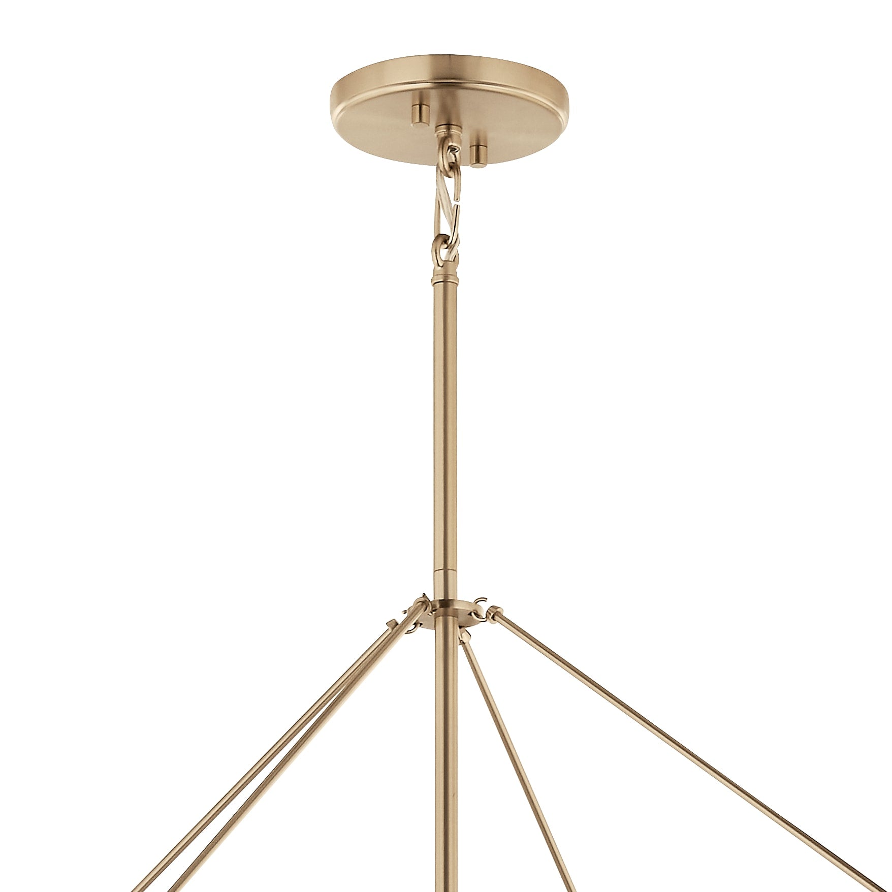 Illuminate your grand spaces with the Kichler Eisley 8-Light Pendant. This striking champagne bronze fixture elevates any modern or contemporary setting with its clean geometric design and nested cage silhouette. Perfect for large rooms, it creates a captivating visual statement while providing ample illumination.
