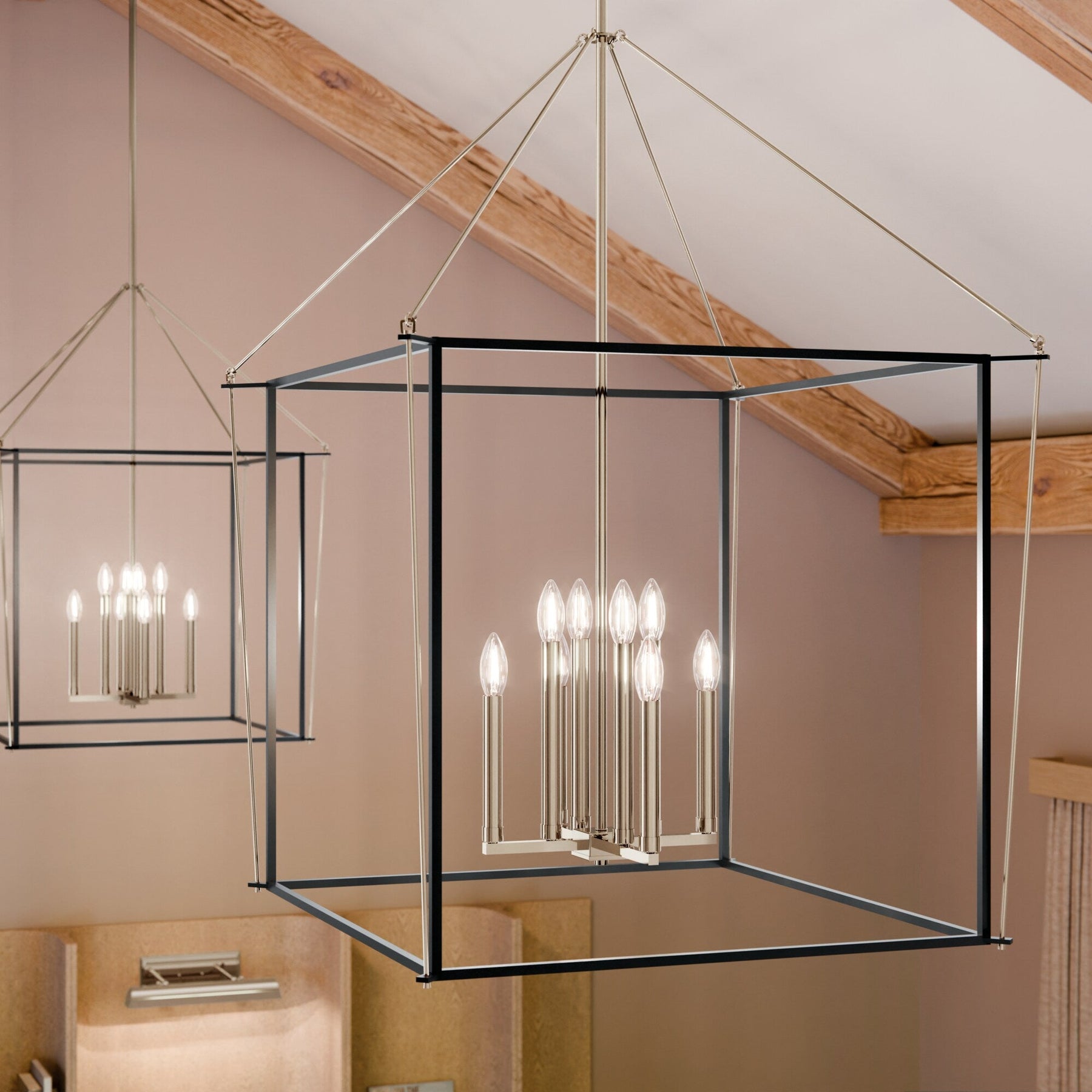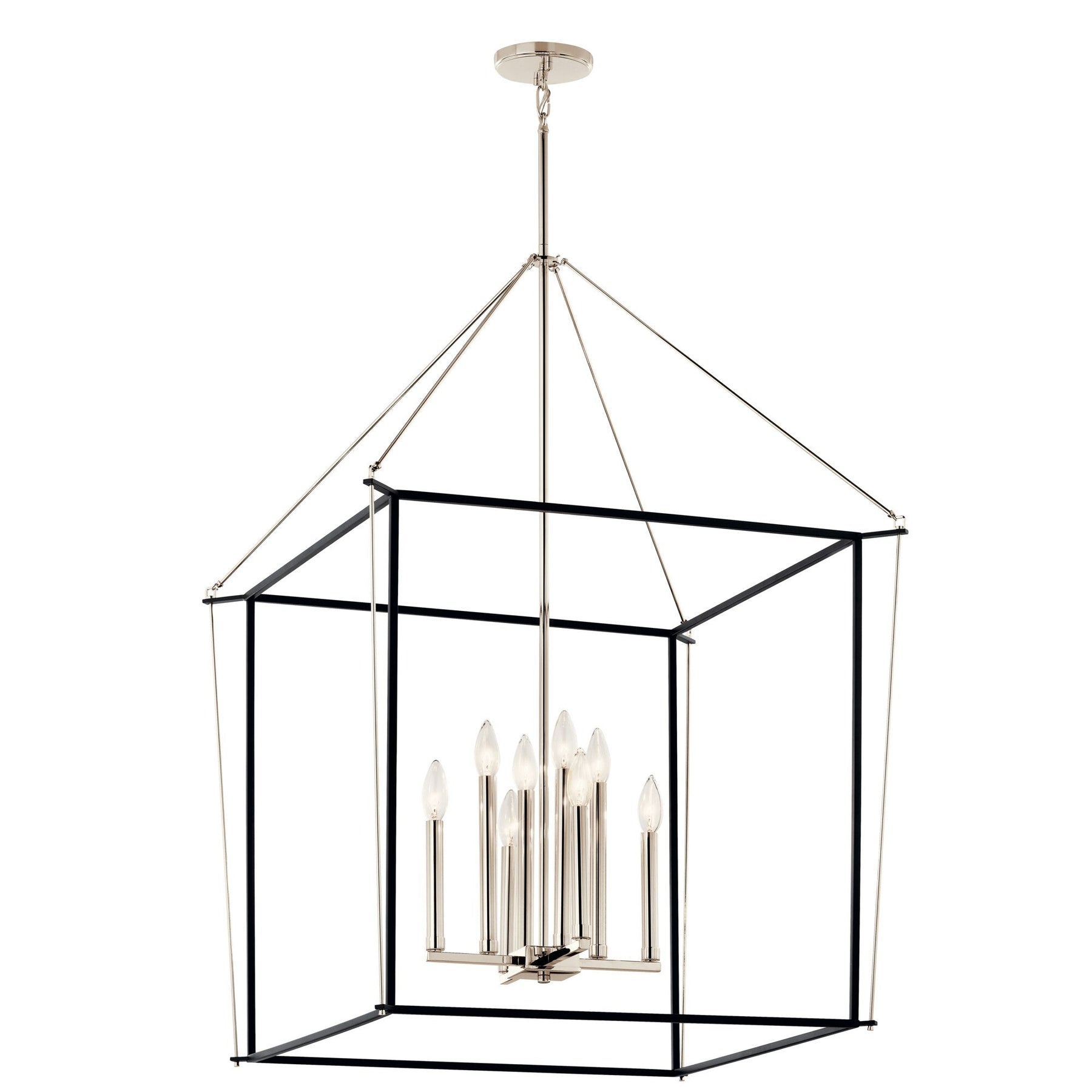 Transform your home with the Kichler Eisley 8-Light Pendant, a striking blend of modern minimalism and elegant design. Its large, polished nickel lantern frame serves as a captivating centerpiece, perfect for foyers or dining areas. Elevate your lighting with this sophisticated fixture that complements a variety of contemporary interior styles.