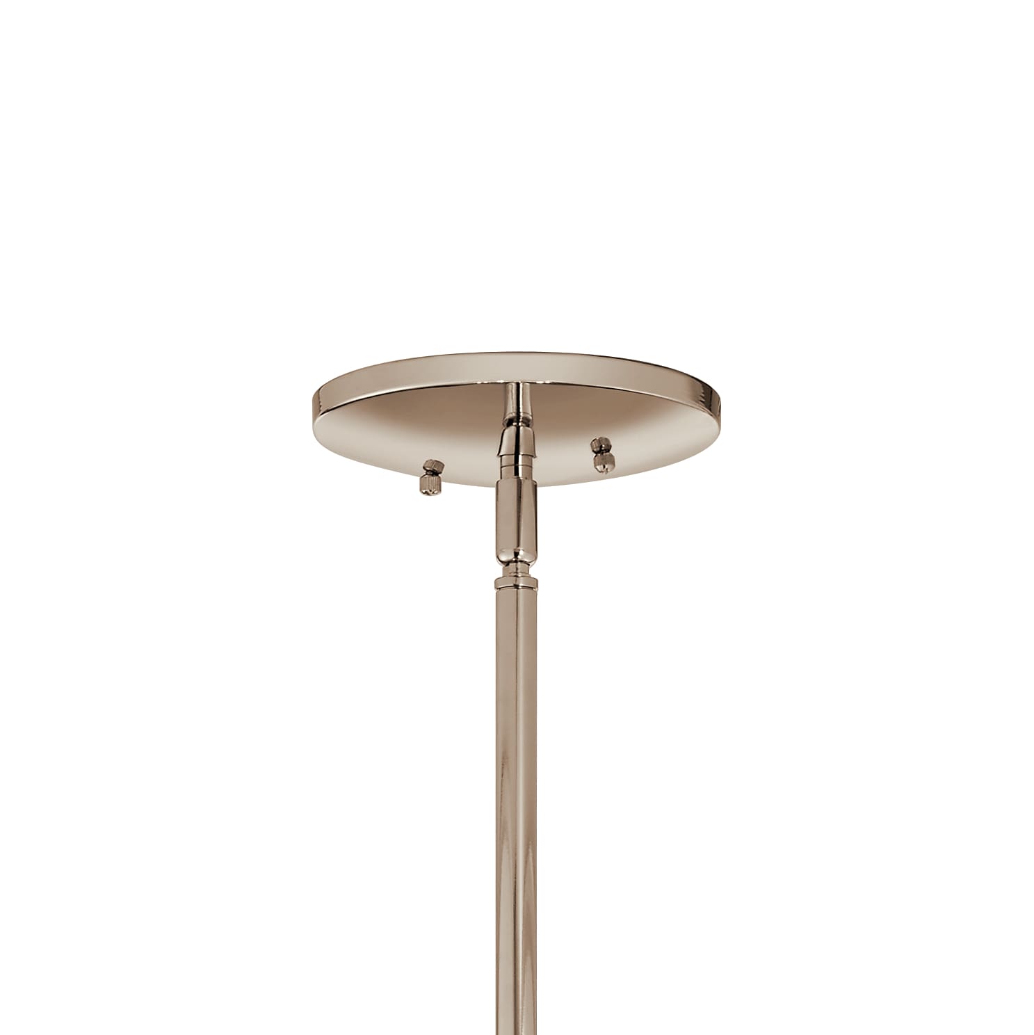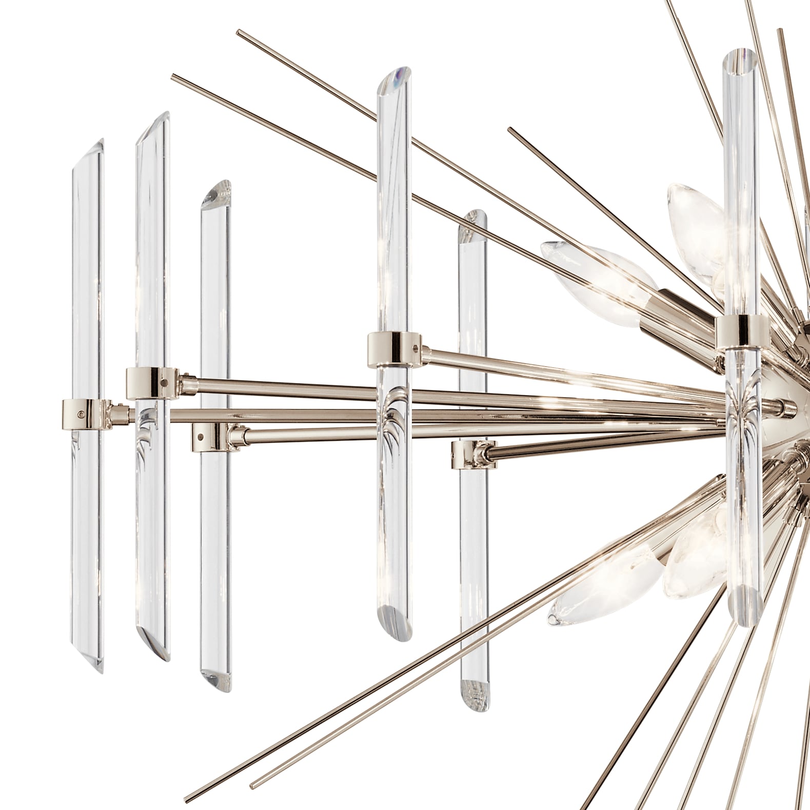 - Design: Mid-century silhouette with modern polished nickel finish and crystal rods.